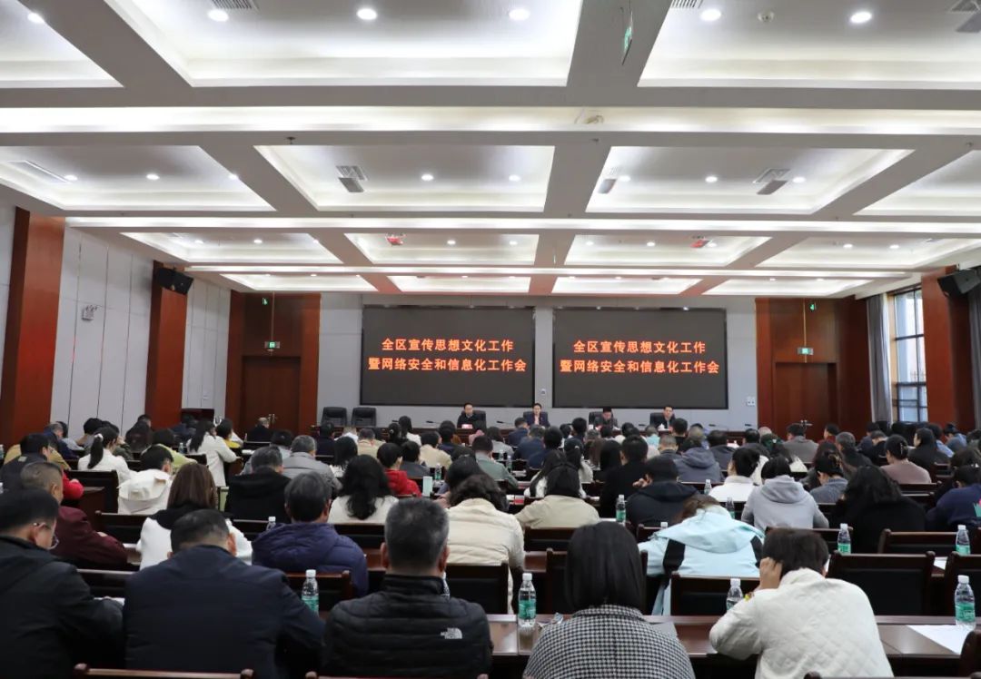 就贯彻落实会议精神,江斌指出,一要提高站位,抓紧学习贯彻。各单位要认真传达学习本次会议精神,深入学习贯彻好习近平文化思想和习近平总书记关于网络强国的重要思想,进一步增强做好宣传思想文化工作和网信工作的思想自觉、政治自觉、行动自觉。二要凝心聚力,做好重点工作。各单位要围绕中央及省委、市委、区委工作部署,坚持不懈用党的创新理论凝心铸魂,切实把宣传思想文化工作和网信工作重点任务落到实处。三要守正创新,强化责任落实。全区各级党委(党组)要切实扛起政治责任和领导责任,加强党对宣传思想文化工作和网信工作的全面领导,区委宣传部要发挥牵头抓总作用,各相关部门要按照职责分工紧密协作,共同打好“组合拳”,推动各项部署落到实处。