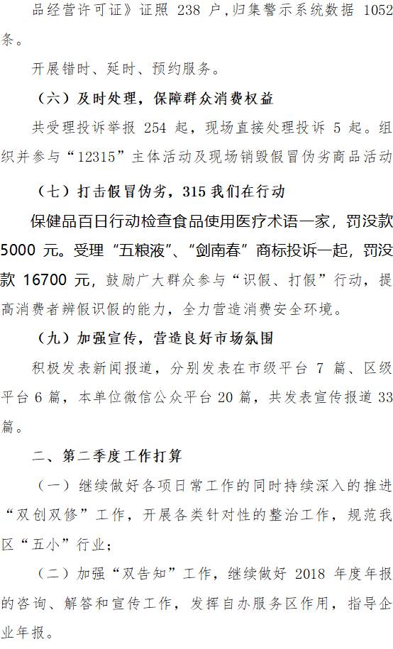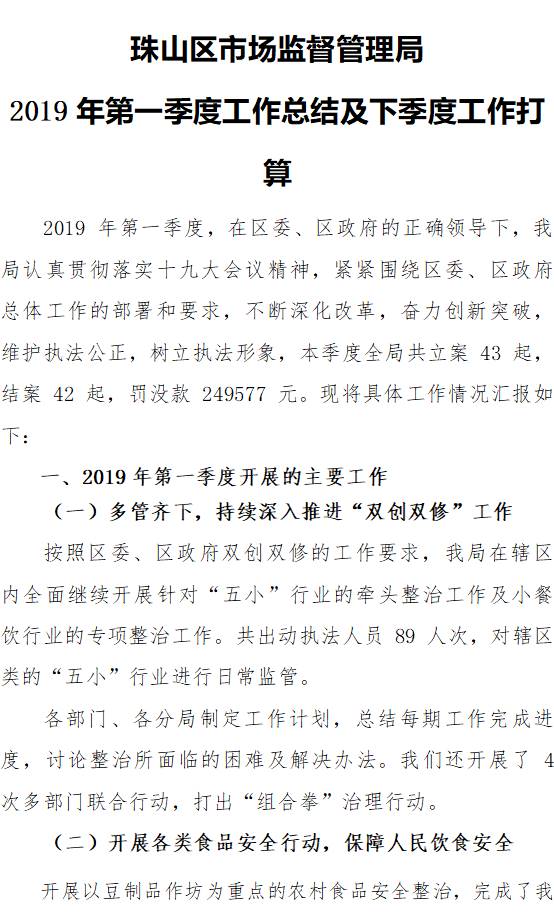 珠山区市场监督管理局2019年第一季度工作总结及下季度工作打算