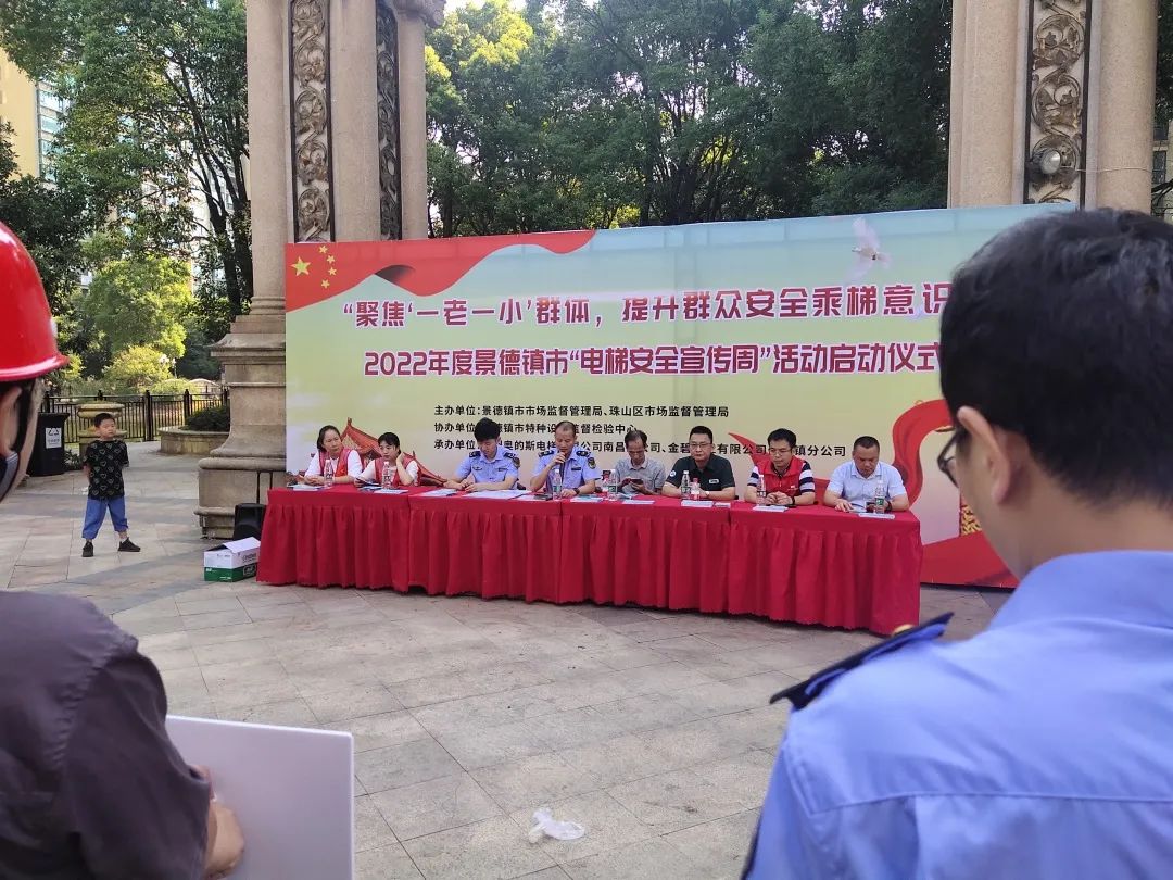 为切实营造电梯安全宣传社会氛围,进一步强化电梯使用单位安全主体责任意识,珠山区市场监管局于8月29日上午联合景德镇市市场监管局、景德镇市特种设备监督检验中心、广州奥的斯电梯有限公司南昌分公司、金碧物业有限公司在恒大名都开展2022年度“电梯安全宣传周”活动启动仪式。