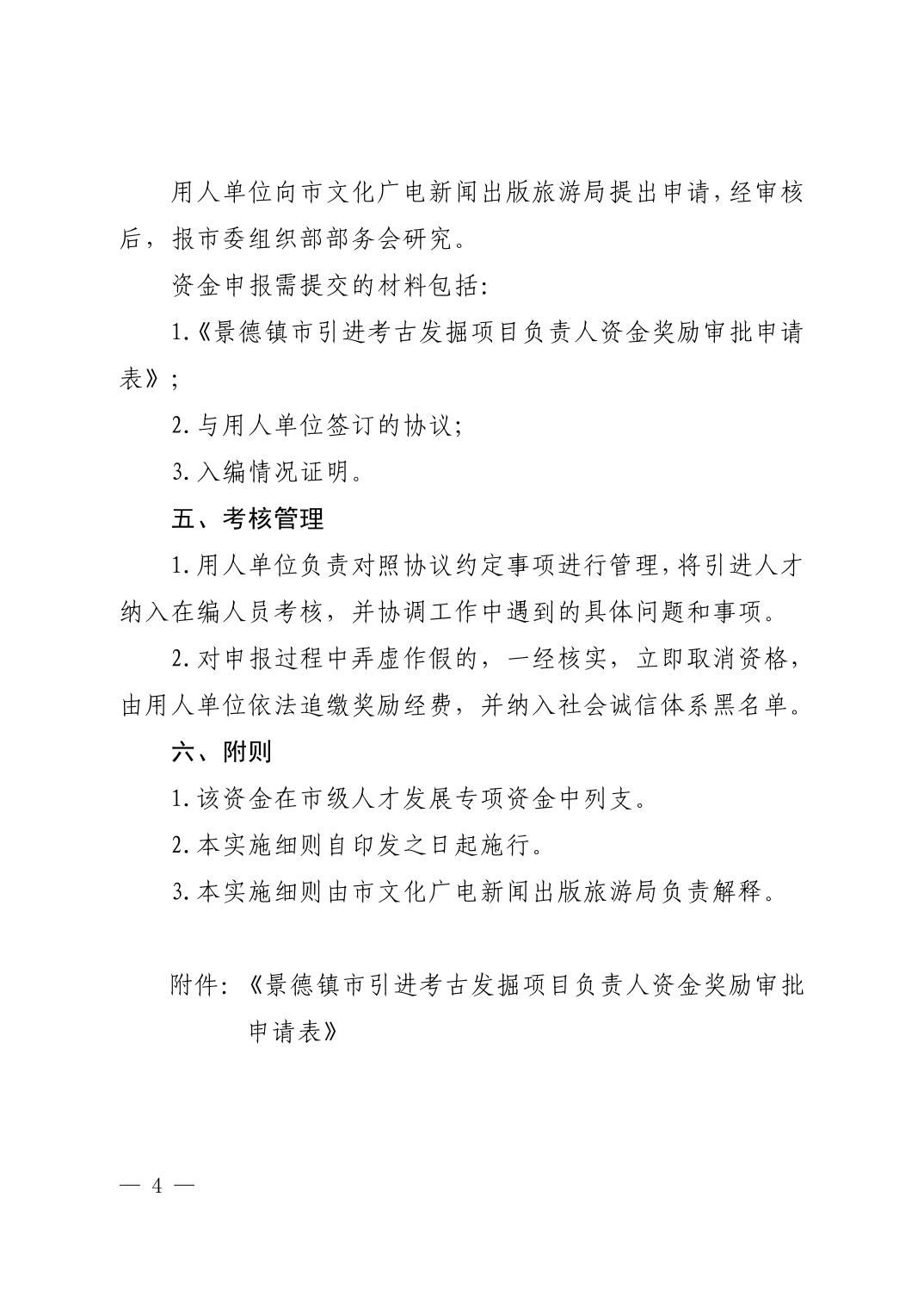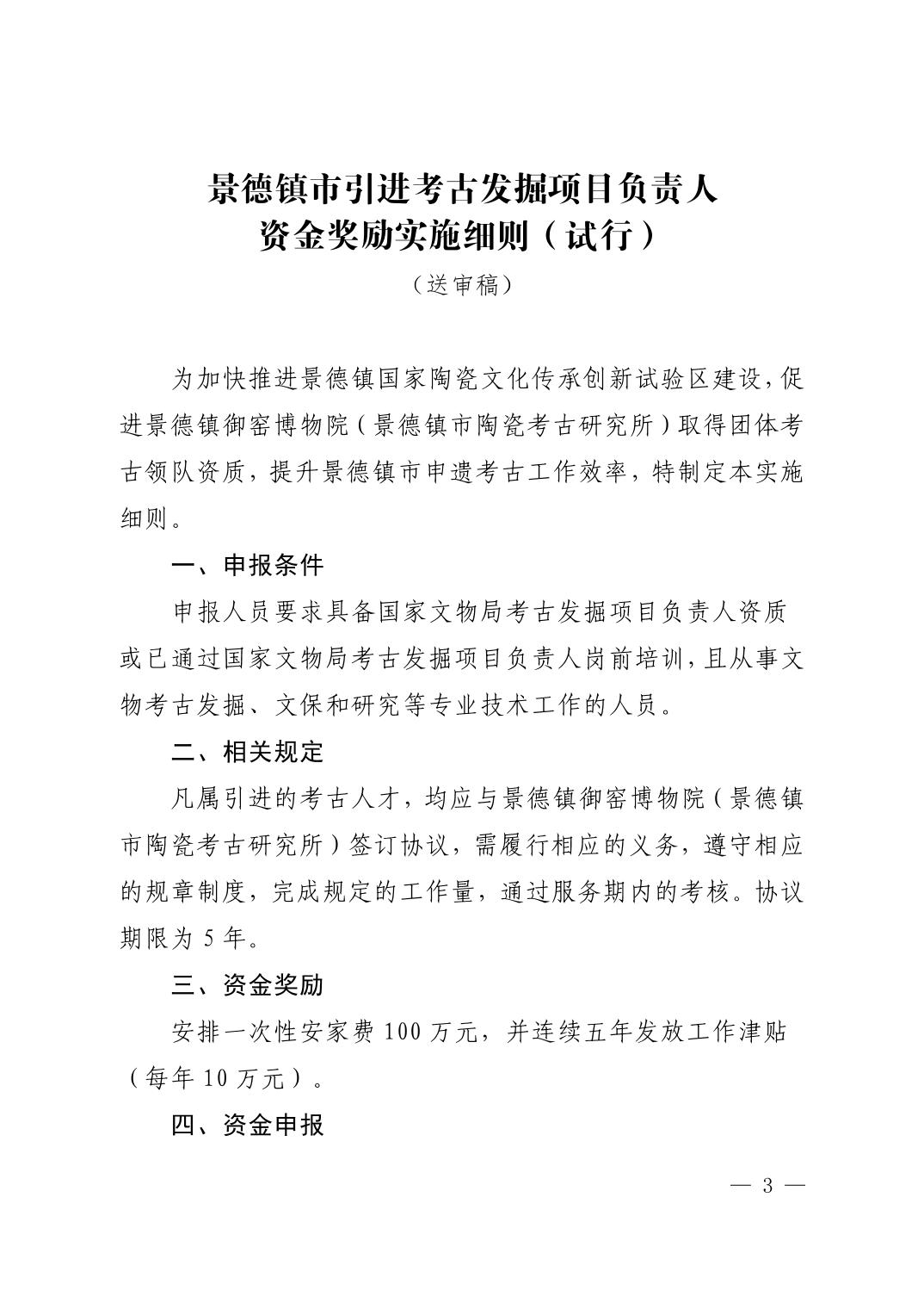 《景德镇市引进考古发掘项目负责人资金奖励实施细则(试行)实施细则》
