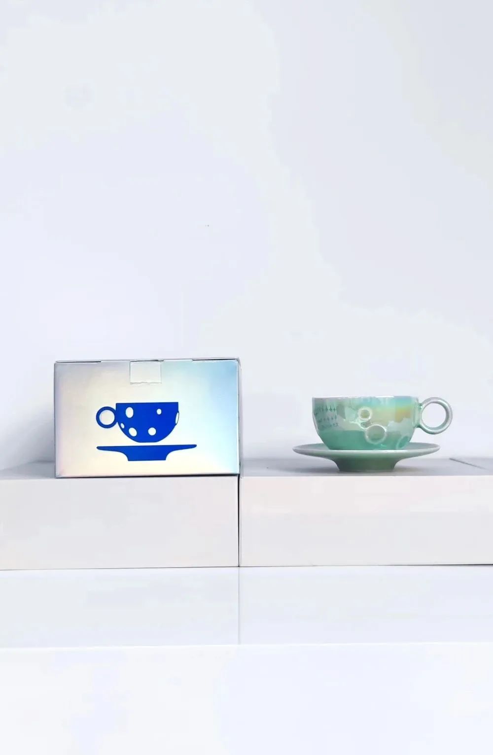 杯体采用半球体造型,外观表面小行星撞击后留下的陨石坑,作为杯身的肌理,形成独特具有幻想的新潮单品,杯托弧形虫洞造型,内部结构与杯底契合吞没整球体之感。