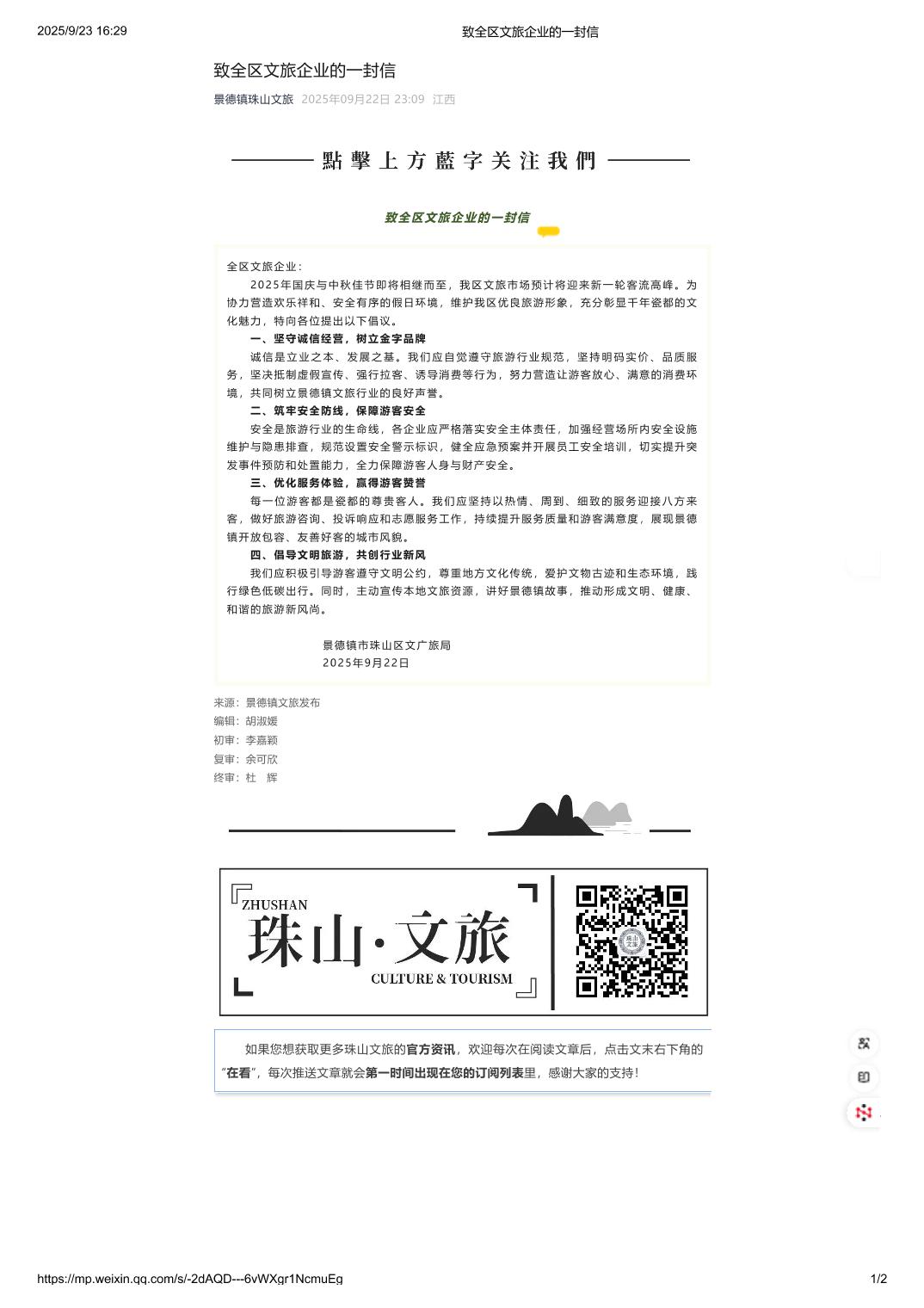 致全区文旅企业的一封信