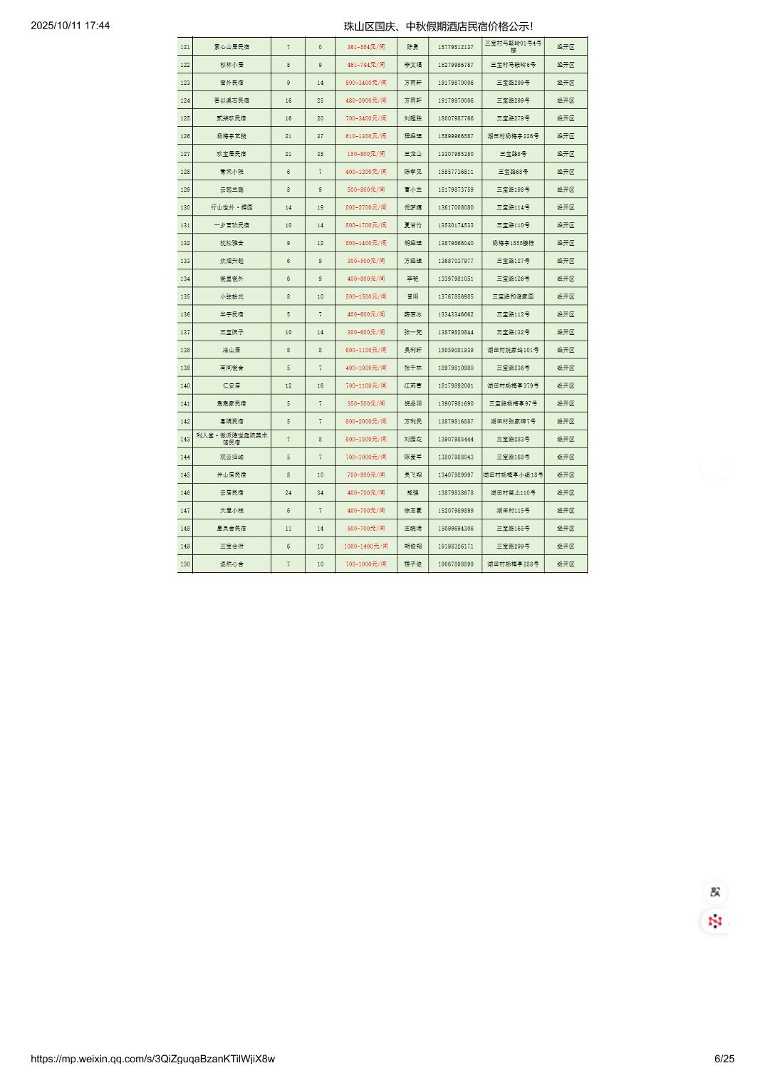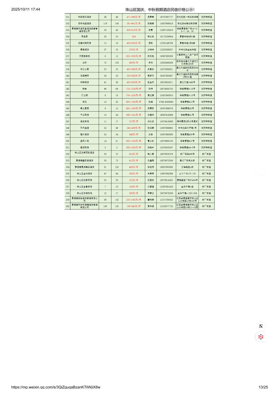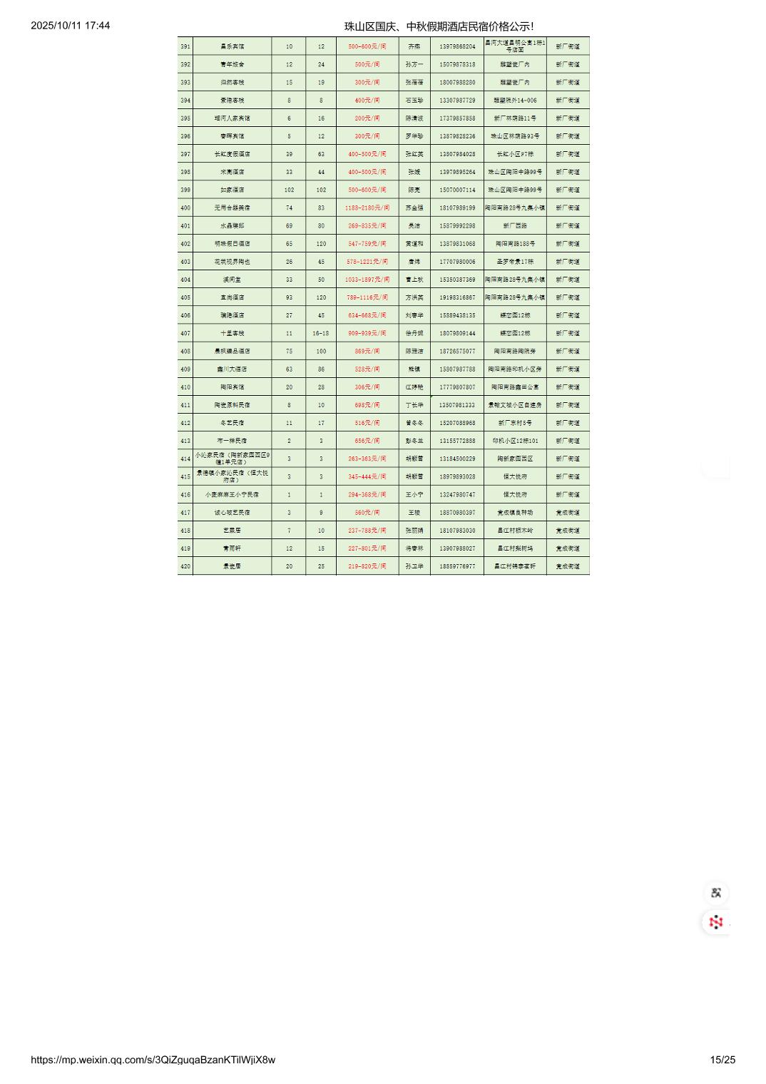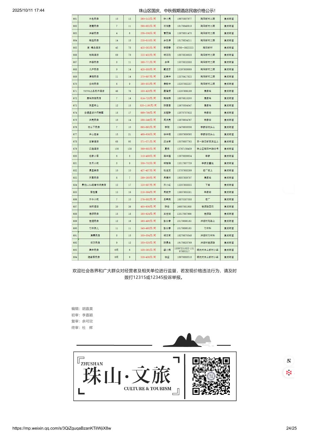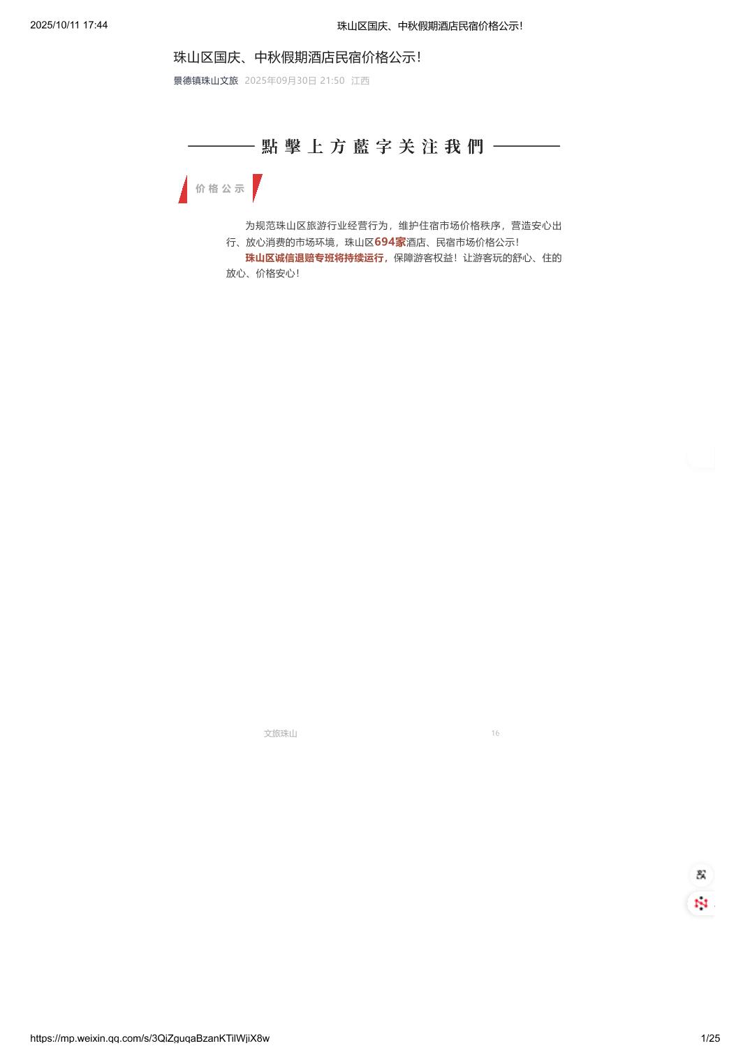 珠山区国庆、中秋假期酒店民宿价格公示!