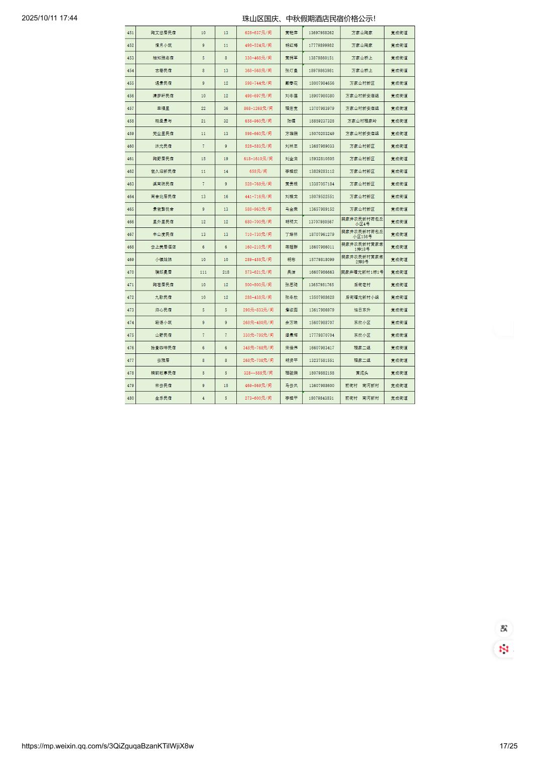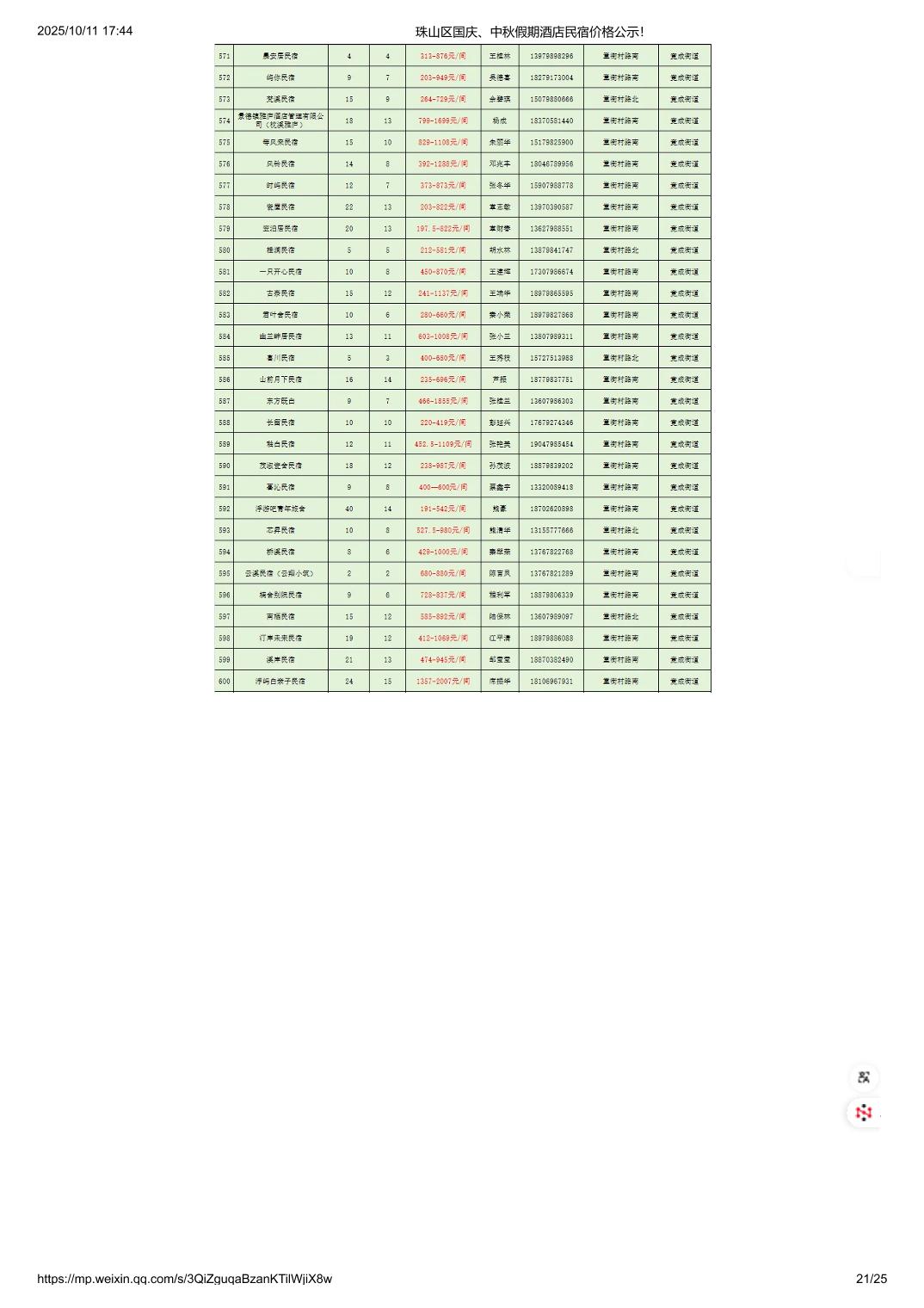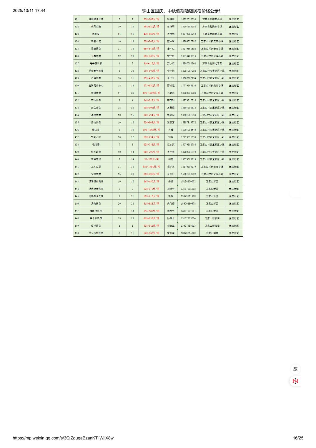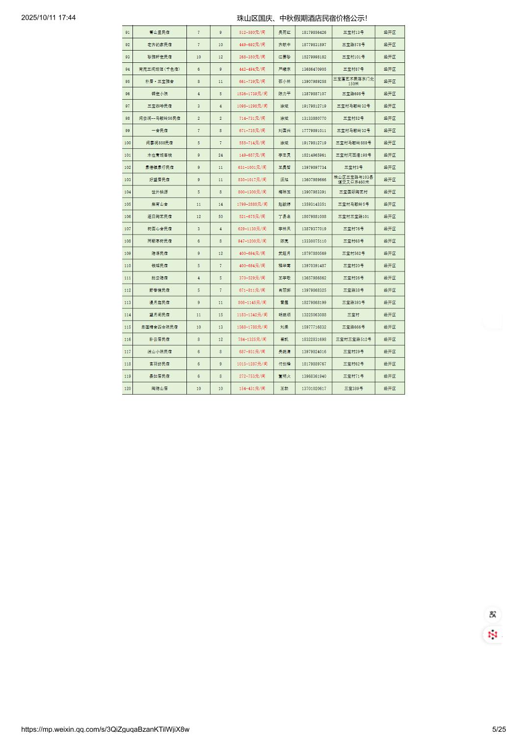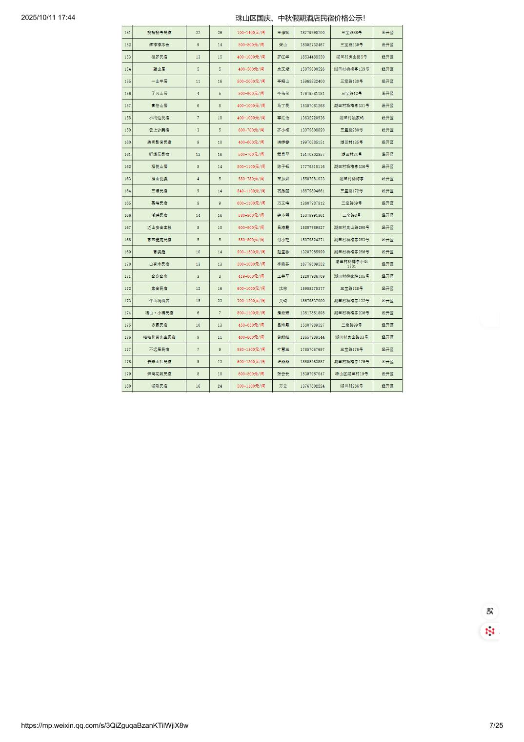 珠山区国庆、中秋假期酒店民宿价格公示!