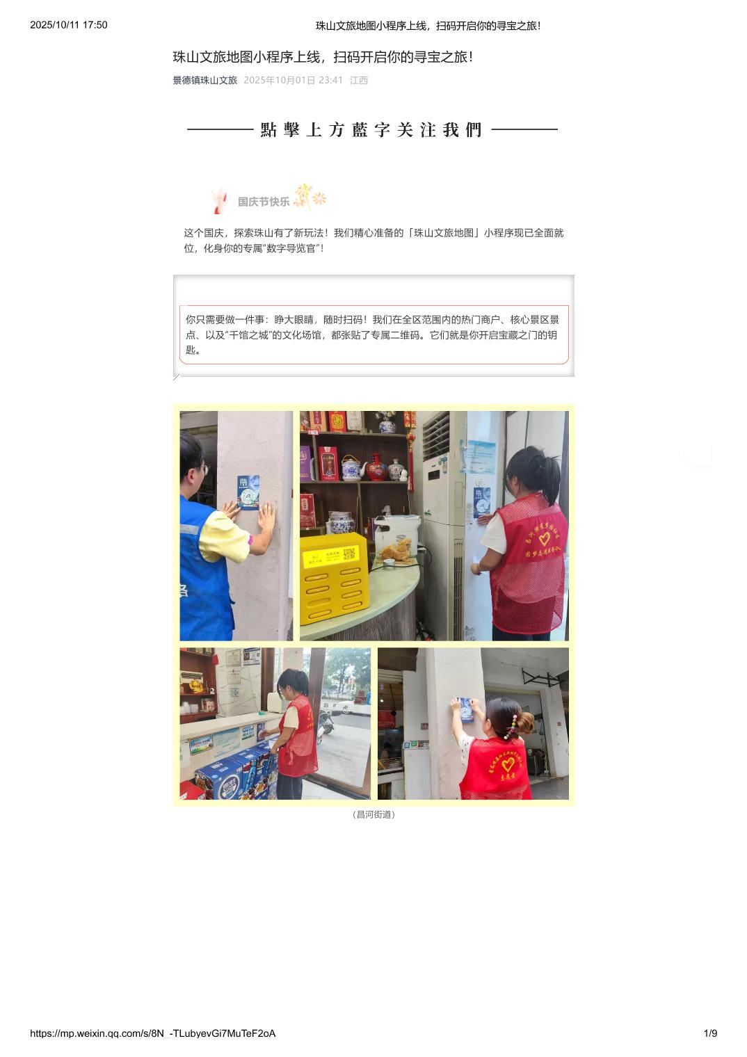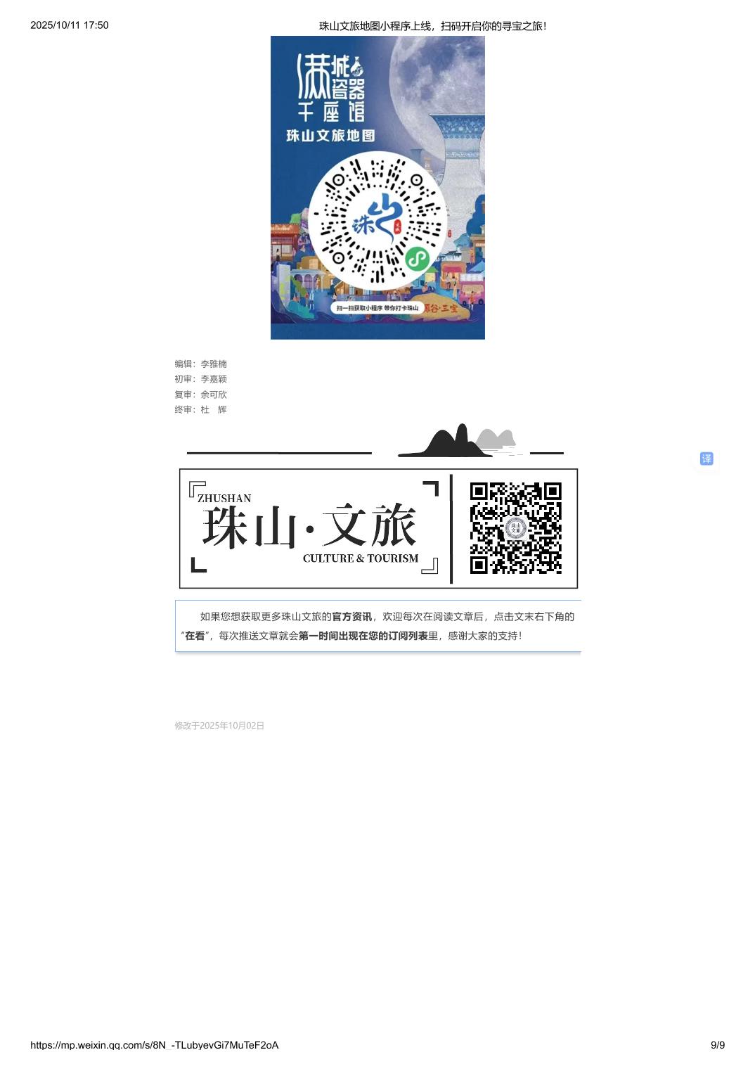 珠山文旅地图小程序上线,扫码开启你的寻宝之旅!