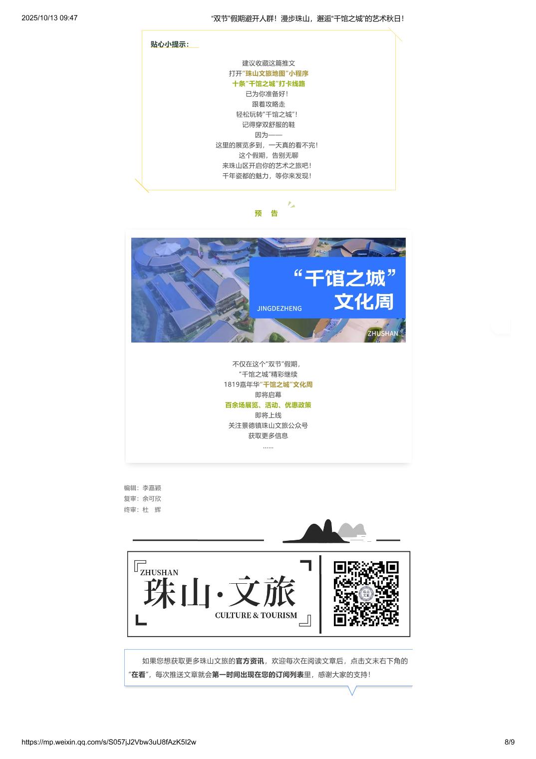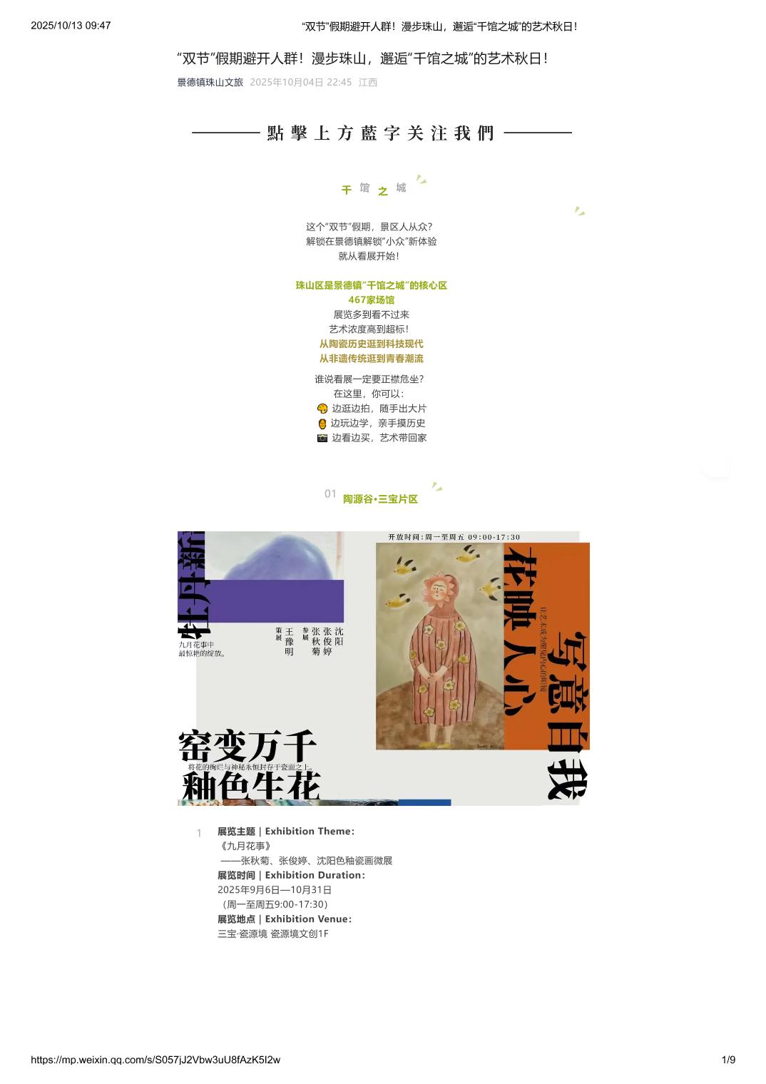 “双节”假期避开人群!漫步珠山,邂逅“千馆之城”的艺术秋日!