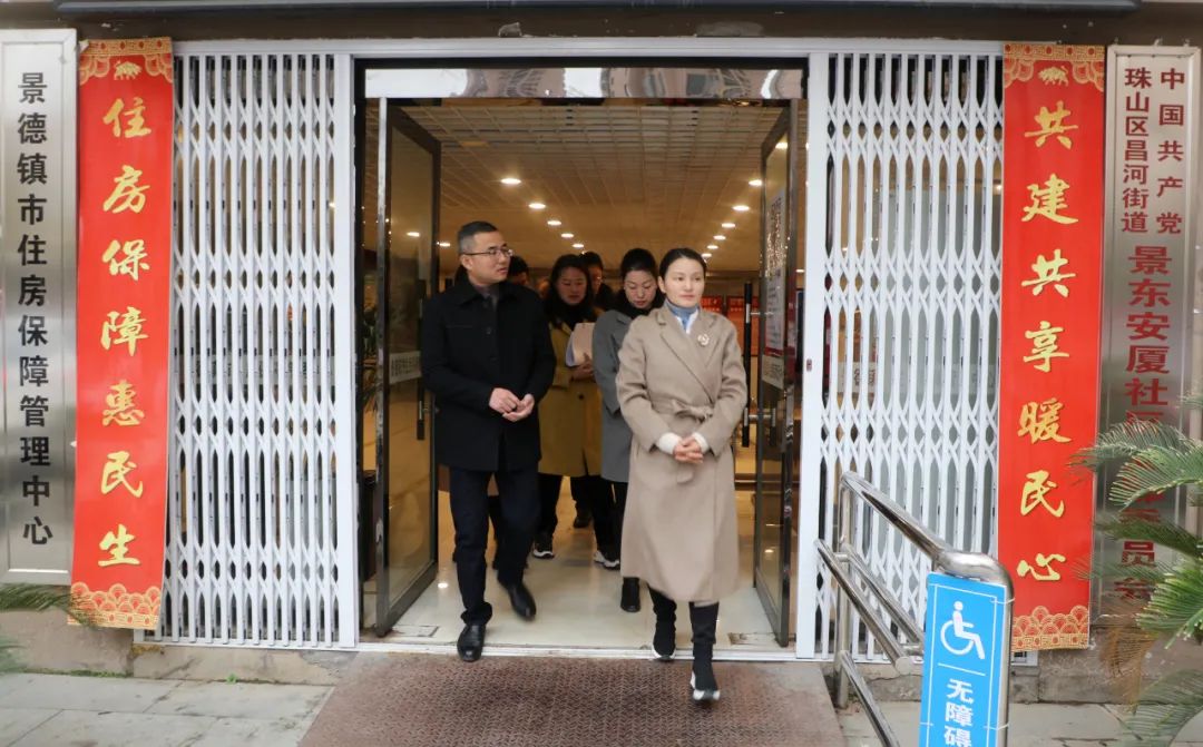 昌河街道景东安厦社区管辖范围为景东安厦保障性住房整个小区,社区以党建引领赋能社区治理,变共管一块地为共下一盘棋,形成社区“两委”引领、租户物业协商、职能部门协作的齐抓共管格局。徐华一行来到位于景东安厦小区内的景德镇市住房保障管理中心,与相关负责人深入交谈,详细了解日常业务办理、群众办事流程、住房保障管理工作、保障性住房政策实施等情况,并现场查看了部分安置项目建设进展情况。