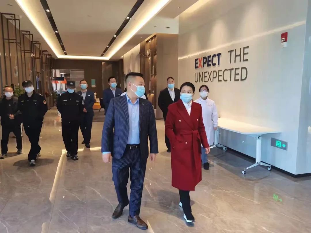 在智选假日隔离酒店,徐华一行看望了一线防控人员,询问防疫管理、防疫消杀程序、防护隔离措施等具体情况,并叮嘱工作人员要按照有关要求,严格落实集中隔离健康管理服务保障措施,扎实细致做好外来入住人员登记排查工作,同时要加强服务保障和人文关怀,确保集中隔离点不留真空、不留漏洞、不留断层,有力有序做好各项疫情防控工作。
