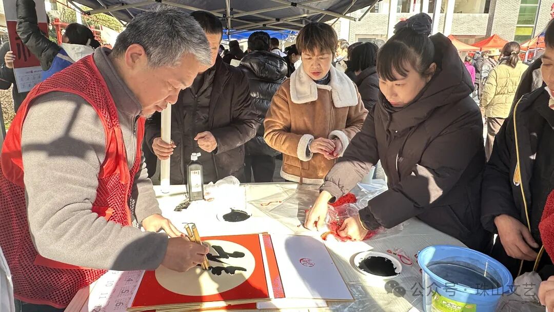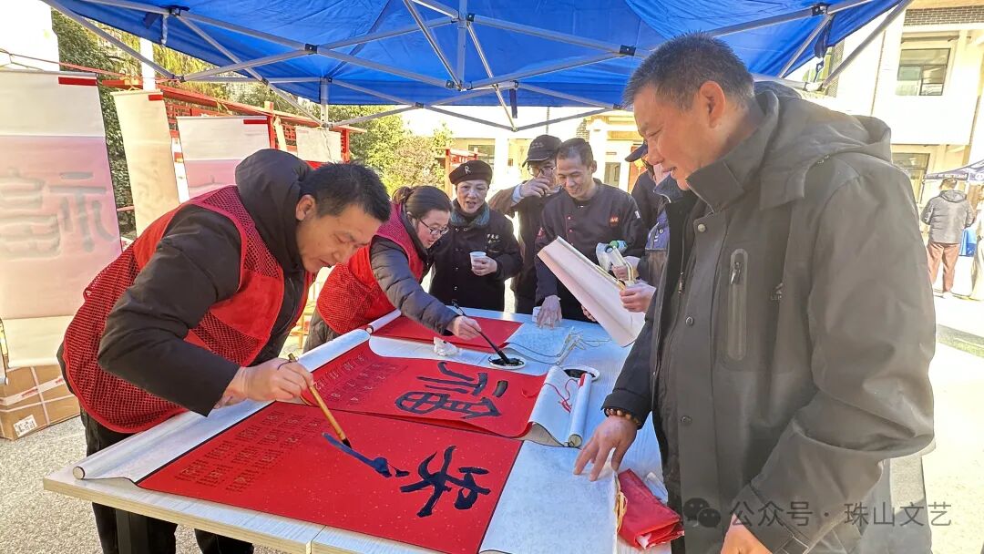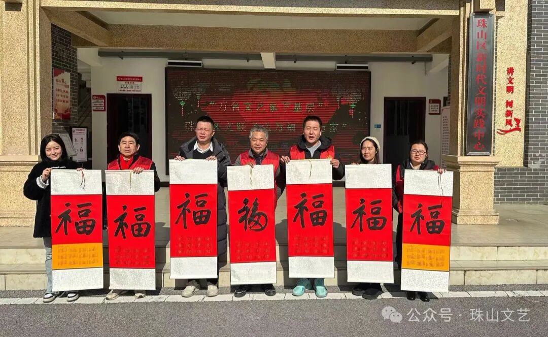 在元旦来临之际,“万名文艺家下基层”——珠山区文联“送万福 进万家”文艺志愿服务活动在珠山区新时代文明实践中心热情上演。阵阵欢笑声中,珠山书协的老师们现场书写的“福”字,随同元旦佳节的美好祝福一一送到群众手中。