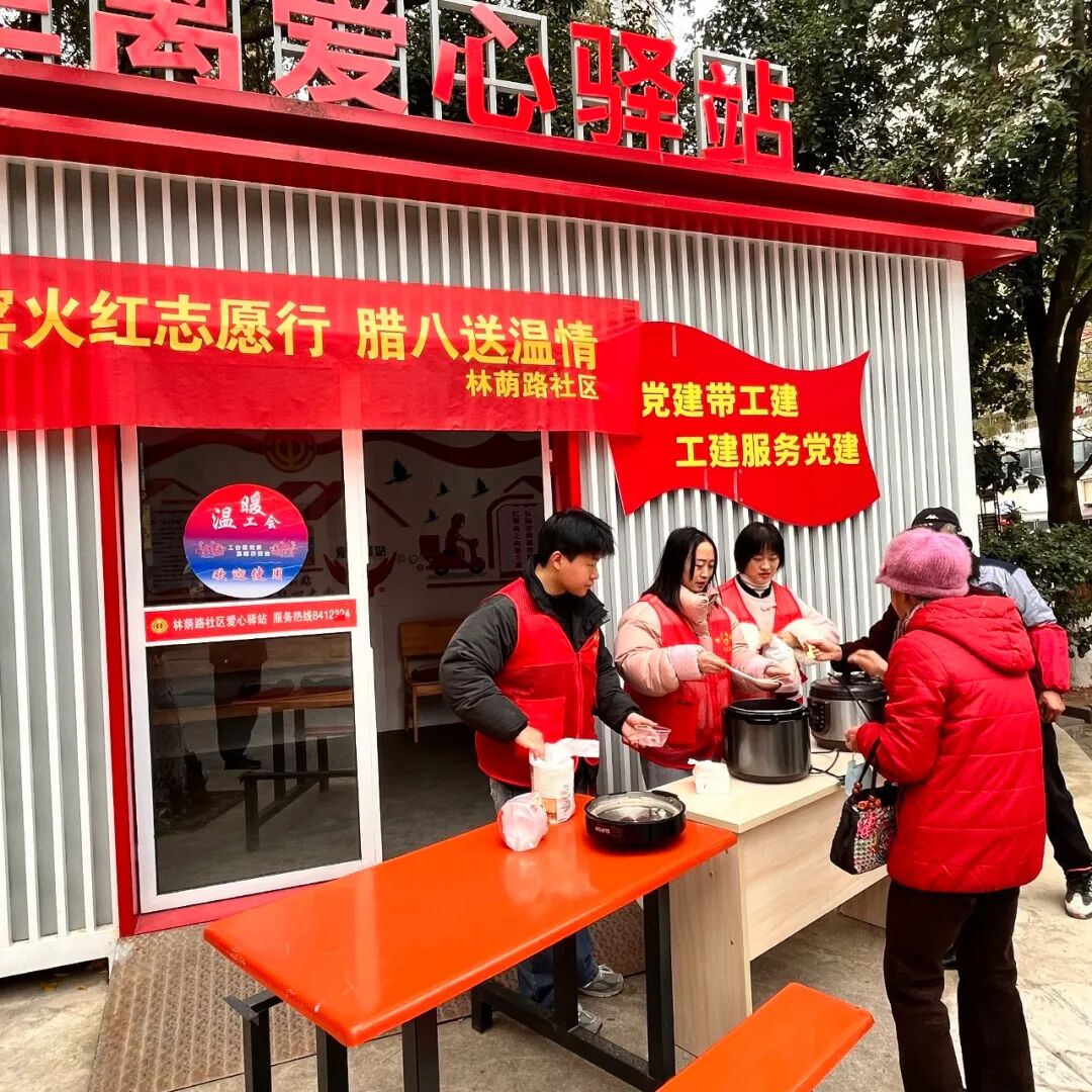 1月7日上午,新厂街道林荫路社区党委、工会、计生协在长虹小区零距离爱心驿站开展“窑火红志愿行,腊八送温情”活动,为辖区居民、志愿者和户外工作者送去了冬日的温暖与关怀。