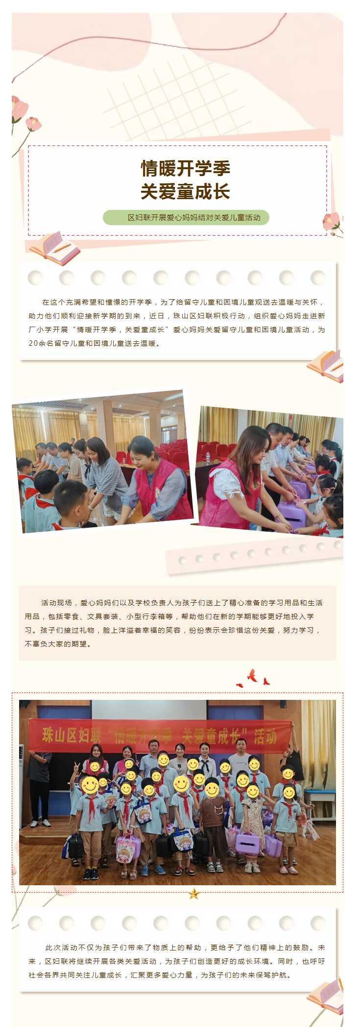 情暖开学季,关爱童成长——珠山区妇联开展爱心妈妈关爱儿童活动