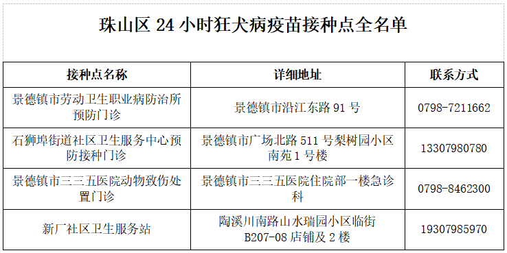 珠山区24小时狂犬病疫苗接种点扩容啦!