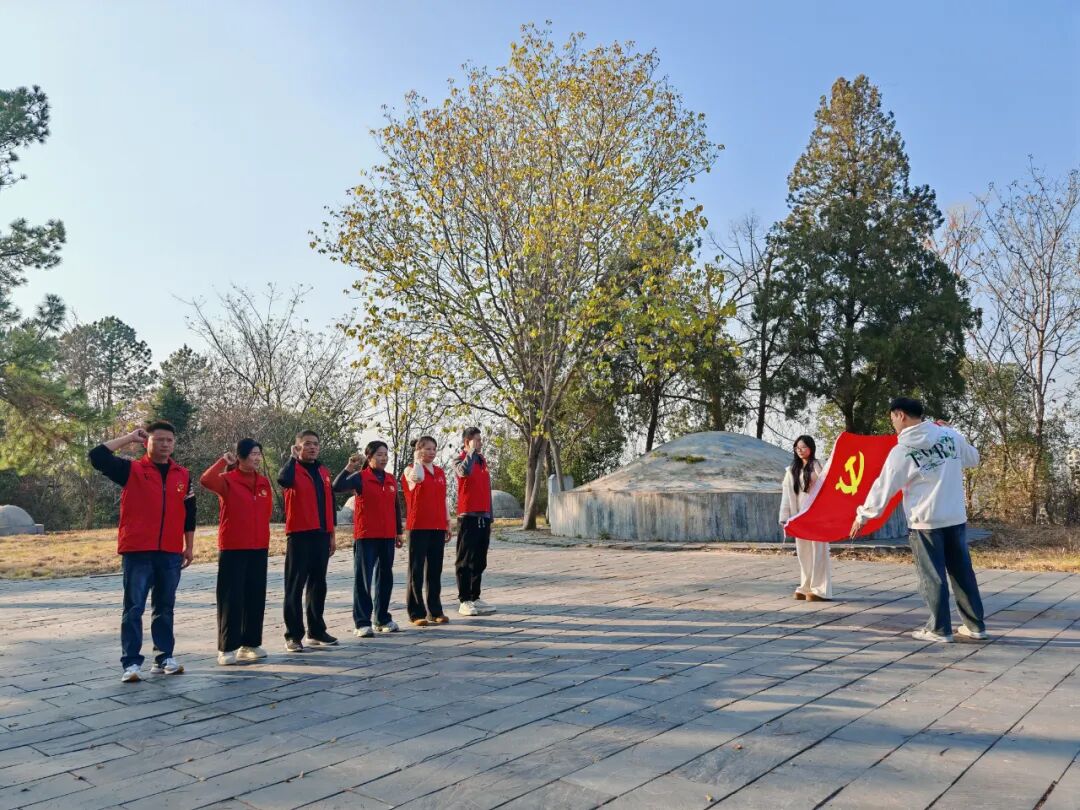 “我志愿加入中国共产党,拥护党的纲领,遵守党的章程……”清扫工作结束后,全体党员干部列队整齐,面向鲜红的党旗高举右拳,庄严宣誓。铿锵有力的誓言响彻陵园上空,回荡在青山翠柏之间,既是对革命先烈的深切告慰,更是对自身初心使命的郑重重申。一字一句,铿锵豪迈,承载着对党的无限忠诚;一举一动,坚定执着,彰显着赓续红色血脉的责任担当。