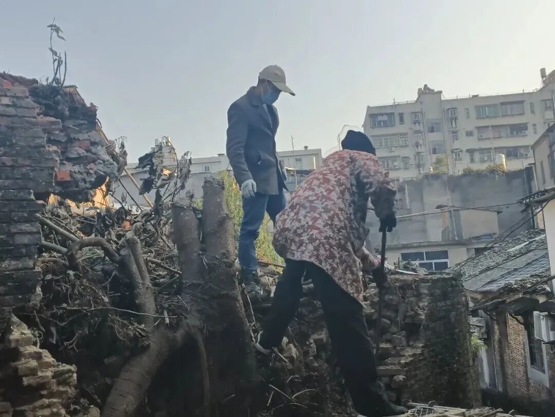 蔡家岭14号作坊内的一棵老旧树木出现枝干腐朽、根系松动问题,随时可能倒伏引发安全事故,御窑社区得知情况后,立即着手推进危树清理工作。为及时消除安全隐患,社区第一时间联系专业工人前往现场勘察,并制定了针对性的清理方案。