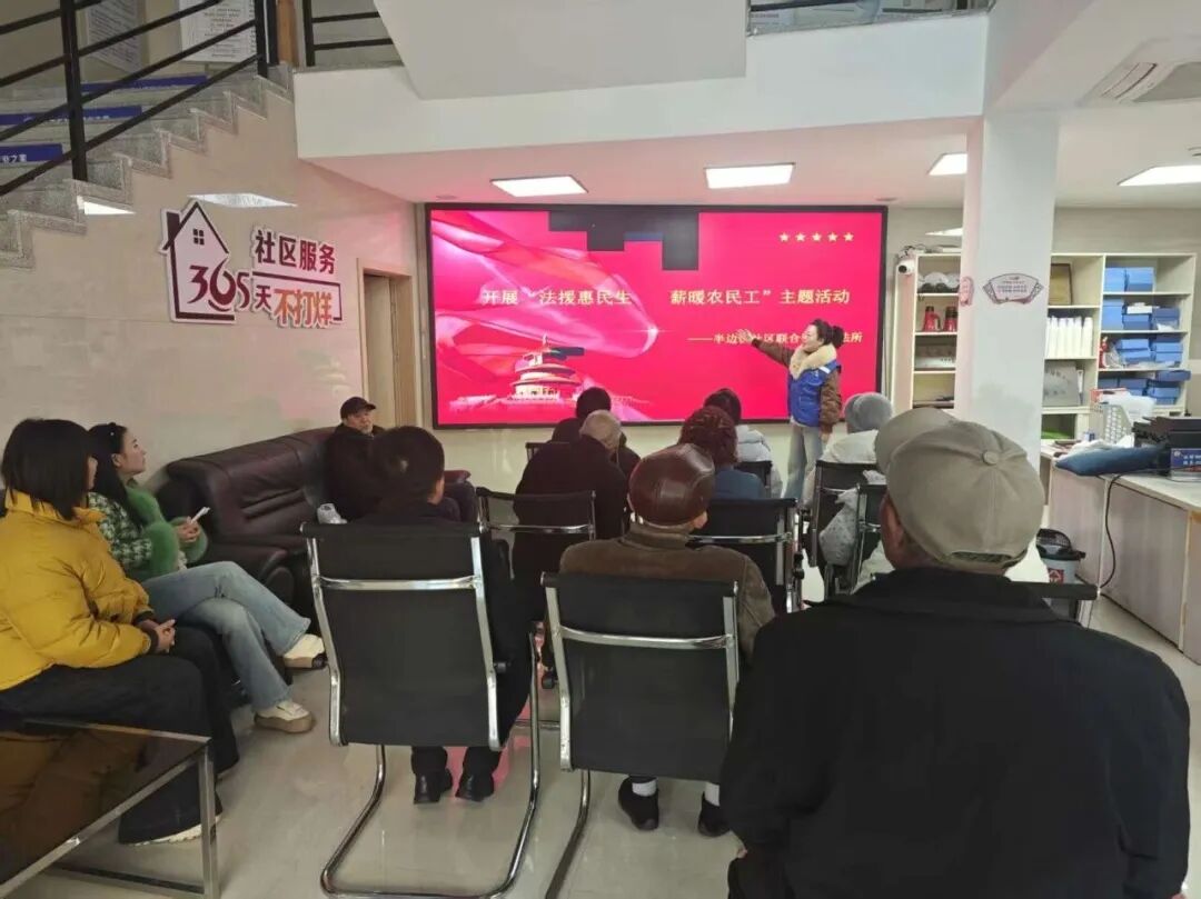 活动中,社区工作人员通过大屏讲解《中华人民共和国劳动法》《保障农民工工资支付条例》、劳动报酬支付、工伤赔偿、劳动合同签订等与农民工切身利益相关的法律知识。针对农民工普遍关注的欠薪维权流程、法律援助渠道等问题,工作人员逐一耐心解答,引导大家通过合法途径维护自身权益。此次活动有效提升了农民工维权意识和法治观念,让群众感受到司法温度。下一步,半边街社区将持续聚焦农民工法治需求,常态化开展普法宣传和法律援助服务,以更精准的举措、更暖心的服务维护农民工群体合法权益,助力筑牢民生保障的坚实法治防线。