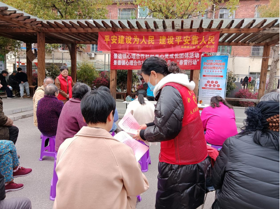 为进一步推动社区平安建设工作,营造和谐的社区环境。3月27日下午,新厂街道林荫路社区、昌江广场社区、景华社区联合景德镇心理合作社共同开展“平安建设为人民,建设平安靠人民”平安建设宣传活动。