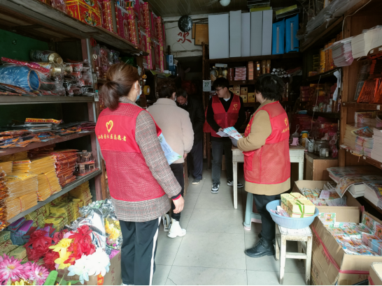 社区志愿者向过往居民发放文明祭祀倡议书,号召广大居民清明节期间祭祀时不要焚香烧纸,提倡鲜花祭祀、网络祭祀等健康文明的祭祀方式寄托哀思,树立文明祭祀、环保祭祀的文明理念。同时,还对辖区内的商铺进行全覆盖检查,要求其禁止出售塑料类等祭祀用品。