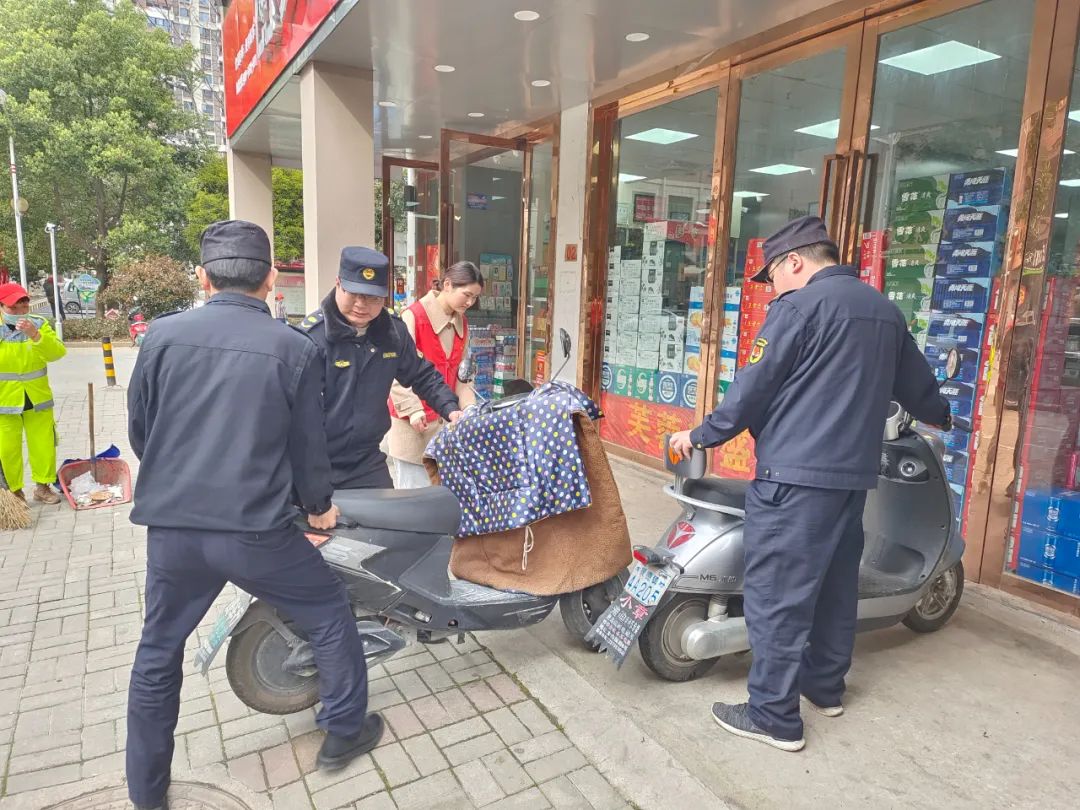 巡查队队员对沿街商铺、居民私拉电线充电的行为进行劝导,告知私拉线路可能存在的安全隐患和周围的集中充电点。清理部分墙面的违规广告,对绿化带内的种菜进行劝阻,要求业主将花盆收纳入屋,劝导车辆规范停放,引导流动摊贩合理摆摊。对餐饮商铺门前油污问题,要求商铺落实门前三包,做好油污清理。