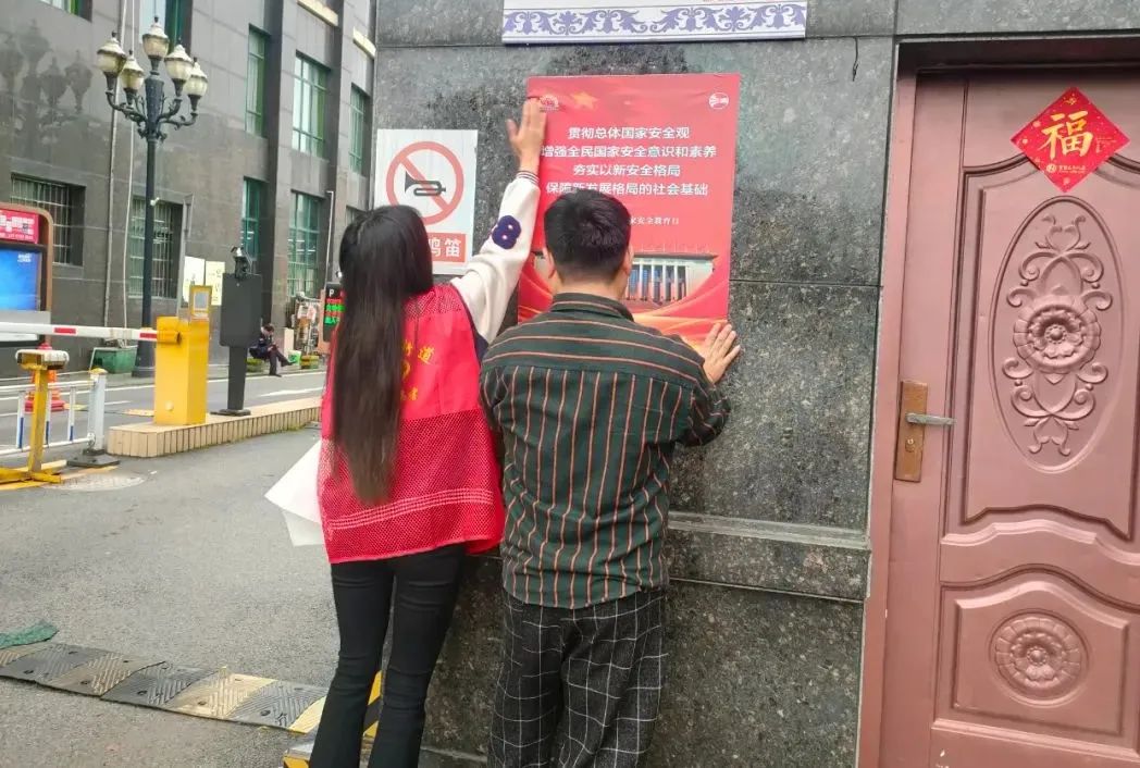 志愿者们利用宣传画形式对辖区居民宣传普及国家安全法律知识,深入学习国家安全法,加强居民国家安全普法教育,推动工作人员和居民学习掌握国家安全相关法律法规知识,提升防范化解重大风险的能力。