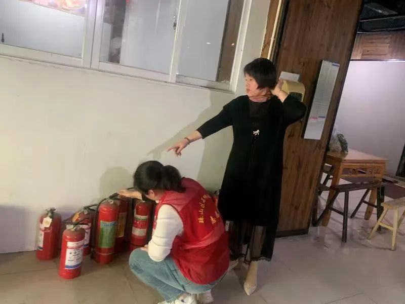 工作中,志愿者带领大家来到辖区内危墙地段、检查墙体情况,强调要在此地段多设立安全警示牌,提醒居民群众注意安全。随后,志愿者来到辖区内制衣厂,检查店内消防器材有无过期失效,提示商户及时对灭火器进行年检,保证消防设施正常使用;提醒商户闭店前要关掉所有电源、燃气,严禁在消防通道堆放杂物,以免发生火灾,积极做好安全防范工作。