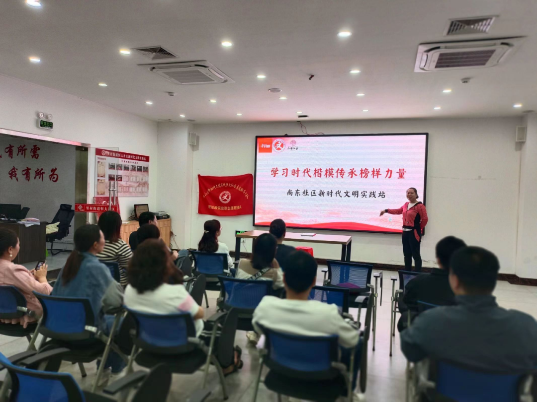 为了培养幼儿从小树立正确的价值观,使社会主义核心价值观的种子在幼儿心中生根发芽。近日,童宾社区新时代文明实践站走进珠山区方家山幼儿园开展了社会主义核心价值观主题教育活动。在活动中,社区宣讲员通过主题教育向孩子们简单阐述了社会主义核心价值观的主要内容及深刻含义,教育幼儿在成才的过程中,要养成良好的道德行为规范,既要做中华传统美德的传承者,也要做社会主义核心价值观的践行者,从小做积极向上的好学生、好孩子,长大后成为有担当、有责任感的好公民。宣讲员带领着孩子们朗读核心价值观,在孩子们琅琅读书声中,一颗颗传承的种子在孩子们的心中生根发芽,孩子们也踊跃发言,说会从平时的一点一滴做起,用实际行动来践行社会主义核心价值观。为进一步提升社区居民节约粮食的意识,树立文明消费、节约用餐的良好风尚。5月9日,新村街道百眼井社区新时代文明实践站组织开展“节粮兴粮 从我做起”宣传教育活动。活动中,志愿者们向辖区餐饮商户及居民讲解了“如何勤俭节约”的生活小妙招,发放了“文明餐桌 节俭养德”倡议书、“加入光盘行动”倡议书等宣传资料,并倡导广大居民从自身做起,从现在做起,节约每一粒粮食,抵制和反对浪费粮食的行为,养成勤俭节约的良好风尚。通过此次活动的开展,增强了辖区居民爱粮节粮的意识,教育引导广大居民群众杜绝浪费、爱惜粮食、崇尚节约、文明就餐,积极养成勤俭节约的良好风尚。下一步,百眼井社区将深入学习贯彻党的二十大精神,以实际行动践行党的二十大报告提到的勤俭节约,一粥一饭,当思来之不易,半丝半缕,恒念物力维艰,从珍惜每一粒粮食做起,为保障国家粮食安全贡献自己的一份力量。尚东社区新时代文明实践站开展“学习时代楷模 传承榜样力量”先进模范学习会