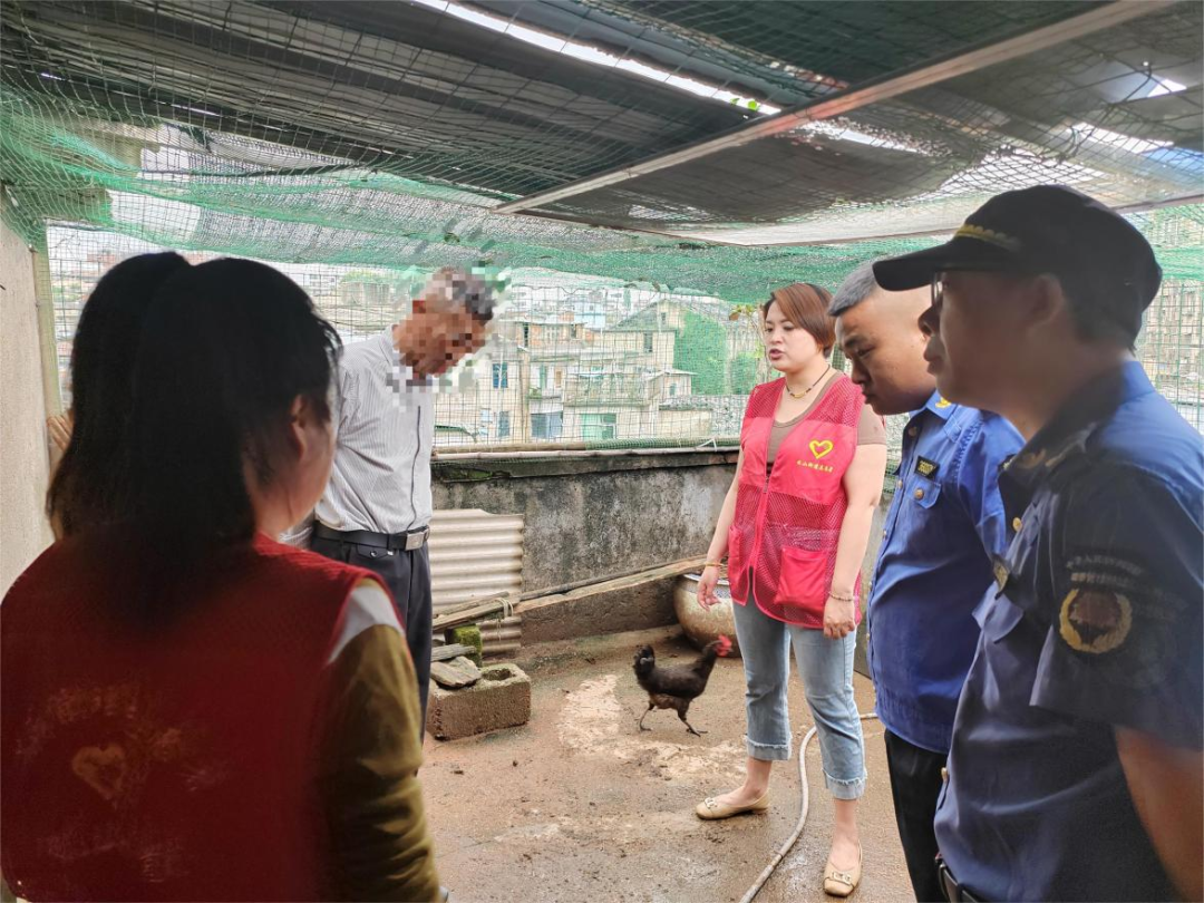5月8日,陶溪川社区内的朝阳路农贸市场入口挤满了社区居民和流动人口,陶溪川社区计生协利用发放宣传彩页、发放宣传品、发放亲子书籍、文化用品等多种形式,广泛宣传人口计生政策、江西卫惠保、普及优生优育、亲子早教、生殖健康等知识,并结合当前新冠感染“乙类乙管”普及家庭防疫知识。工作人员还面对居民提出的计生政策、两癌筛查及疾病预防和江西卫惠保参保方式等知识,进行了耐心细致解答。通过此次活动,进一步提高辖区居民和流动人口对政策和健康知识的了解与认知,同时也拉近了社区与居民群众之间的距离,不断增强育龄群众和计生家庭的获得感、幸福感、安全感。御窑社区:开展禁养家禽专项整治工作