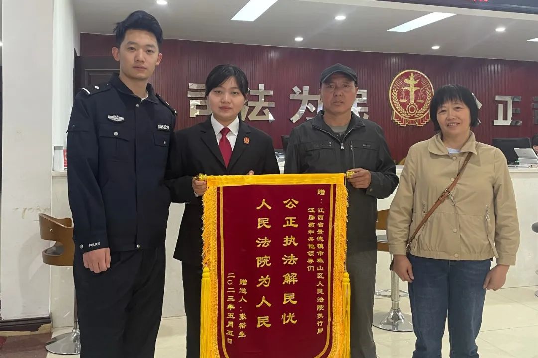 近日,申请执行人张某来到景德镇市珠山区人民法院,将一面“公正执法解民忧,人民法院为人民“的锦旗送到了执行局,并向所有执行法官表示由衷感谢。