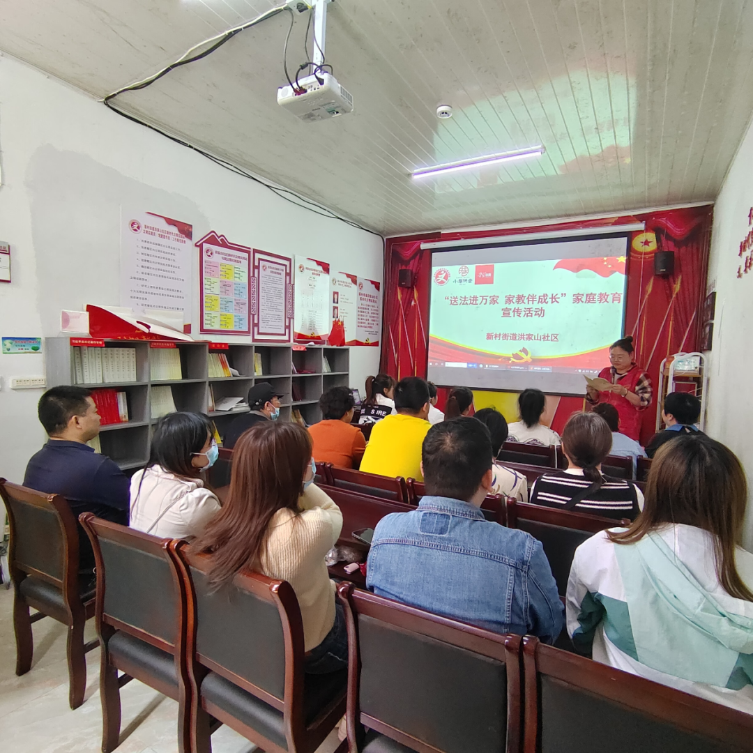 活动现场,工作人员详细讲解了“双减”政策下家长的心理纠结、儿童发展的规律、家长助力孩子心理健康等方面需注意的问题。为扩大宣传效果,社区妇联在辖区内以入户走访和发放宣传单的方式广泛开展家庭教育宣传。工作人员在线观看了家庭教育宣传视频,并邀请辖区党员居民群众通过微信群的方式参与学习。普法志愿者们还向居民群众进行法律咨询和家庭教育宣传,发放《家庭教育促进法》《反家暴法》等宣传手册。“ 教育是双向的,孩子需要成长,作为家长一样需要不断学习去提高自己。”洪家山社区负责人表示,社区将不断加大家庭教育宣传力度,倡导辖区居民以科学的态度参与家庭教育,传承良好家风家训。通过此次送法进万家活动,极大地调动了居民群众学习法律的热情,有效增强了辖区居民家庭教育的针对性和有效性,让普法工作更接地气,全面提高社区居民群众的法治意识。