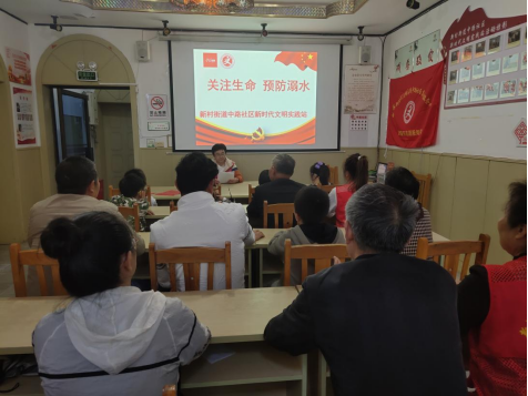 活动中社区工作人员为孩子们播放了防溺水安全教育专题片,接着通过现场讲解的方式向家长和学生们宣传防汛、防溺水等知识,教育引导家长及学生增强安全防范意识,提高自救自护的能力,同时呼吁家长督促学生改变生活中忽视安全警示、不遵守安全规则的陋习,提高对溺水等安全事故的防范能力,活动后社区工作人员又到居民区发放防溺水宣传资料。