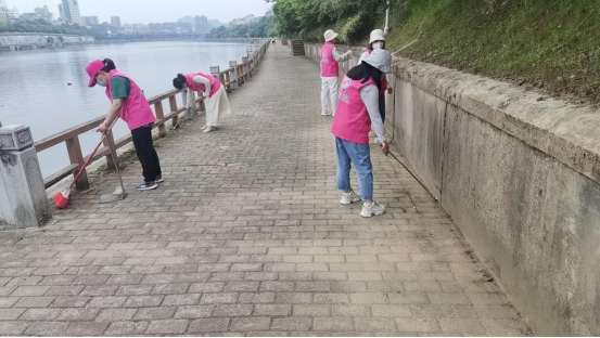 浙江路社区青花姐姐巾帼志愿者们来到昌江河沿岸,检查沿河环境,并进行垃圾清理。青花姐姐巾帼志愿者们发扬不怕苦、不怕累的精神,沿着河边进行巡河,大家手拿钳子,扫帚,手提垃圾袋,弯腰在河堤边或草丛中捡拾白色垃圾、矿泉水瓶、果皮等各种生活垃圾,一些散落在草丛中的白色垃圾,就用夹子夹起来;夹不起来的,索性用手捡。一会儿,大家的手中都已“战果累累”,经过一个多小时的劳动,河道边的白色垃圾得到有效清除。