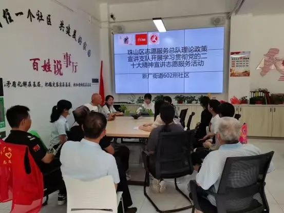 近日,珠山区志愿服务总队理论政策宣讲支队,以宣传宣讲、志愿服务等多种形式,广泛开展“党的二十大精神润心田 文明实践谱新篇”群众性主题宣传教育活动,602所社区党员、党员志愿者共15余人参加。