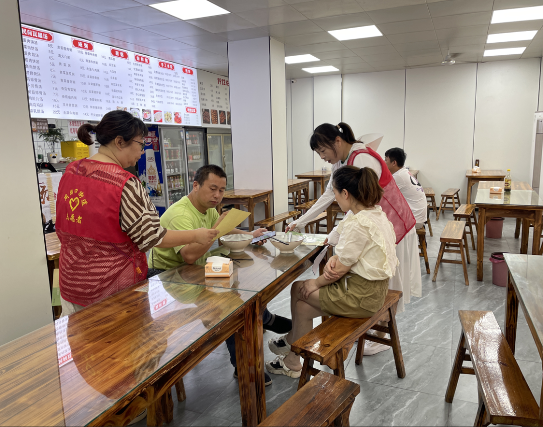近日,中华南路商户和居民分别反映下水道严重堵塞,污水外溢,影响其正常营业和居民出行,经社区工作人员的协调,商家联合出资治理,问题终于得以解决。中华南路商户以餐饮门店为主,餐饮油烟进入地排,时间长了下水管道严重堵塞,导致有油污的污水外溢,由于商户们共用下水道,给居民出行和商户经营都造成了不便和困扰。社区网格员巡查现场并收集经营商户及楼栋居民的意见,通过协调,居民与商户间互相达成谅解,并通过做工作商户愿意联合出资清掏下水道。随后社区迅速联系了专业清掏人员对此处的下水管道进行疏通,经过一上午的努力,终于将下水道彻底清理疏通完毕,为辖区商户和居民解决了一大难题。商户和居民对社区的工作连连称赞:“你们把群众的困难放在心上,并且想办法解决,我们感到很高兴,也很暖心。”金家弄社区在辖区内营造出“人人关心营商环境,人人维护营商环境”的良好氛围。为今后进一步落实优化营商环境工作,保护各类市场主体合法权益,激发市场活力,推进经济社会高质量发展提供有力保障。为了进一步弘扬中华民族勤俭节约的美德,倡导居民践行美德健康生活方式,6月13日,广场社区新时代文明实践站组织党员志愿者在辖区开展“反对浪费、崇尚节约”主题宣传活动。为减少“舌尖上的浪费”,共建文明餐桌,志愿者每到一处餐馆、饭店、公共场所,都向经营者、用餐者、居民宣传倡导“光盘行动”。把光盘行动的宗旨:餐厅不多点、食堂不多打、厨房不多做,宣传到位,让大家养成生活中珍惜粮食、厉行节约反对浪费的习惯。旨在通过宣传活动提醒居民珍惜粮食是需要遵守的传统美德之一。本次宣传活动引导餐饮门店、小区居民了解反对餐饮浪费的重要性和“光盘行动”的意义,增强了厉行节约、反对浪费的意识。居民们也纷纷表示,在以后的生活中,一定会杜绝铺张浪费,将厉行节约、反对餐饮浪费的行动内化于心、外化于行,成为社会新风尚。