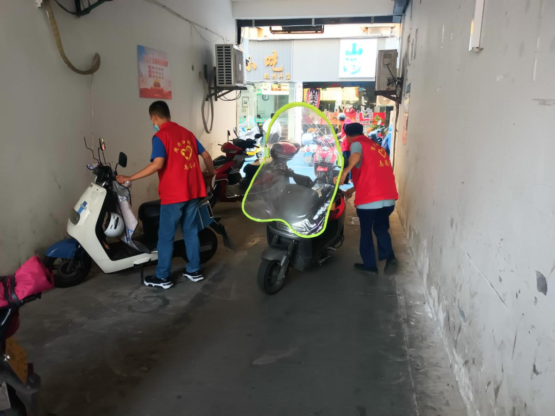 活动中,志愿者们相互协助,不怕脏、不怕累,对本辖区内小区楼栋、卫生死角、垃圾广告、绿化带内白色垃圾、烟头、果皮纸屑等进行了认真清理,并对乱停放的非机动车辆进行了集中整治,将店铺门口、消防通道等处的乱停放非机动车拖移至非机动车停车点,做到车头朝向一致,停放整齐。随后,志愿者到十字路口对行人横穿马路、不走斑马线,骑车不戴安全头盔等不文明交通行为进行耐心劝导,引导路人自觉遵守交通法规,进一步维护交通公共秩序。“小朋友,过马路请走斑马线”“先生,现在是红灯,请稍后再走”一句句温馨的提示,一次次耐心地劝导,饱含着志愿者的热情。