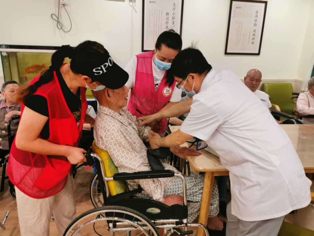 6月15日,志愿者们来到尚东北一区长者之家,为老人们送上节日祝福和大米、食用油等慰问品,让老人们感受到党和政府的温暖,医护人员认真的为老人们进行身体基础情况检查,并仔细的回答老人们对日常生活中应该怎么保养自身的问题。社区志愿者们与老人面对面地亲切交谈,认真询问老人们在养老院中的生活状况和身体情况,用真诚的行动表达对老人们的关爱之情,养老院里笑声不断,呈现出老有所养、老有所乐的和谐气氛。