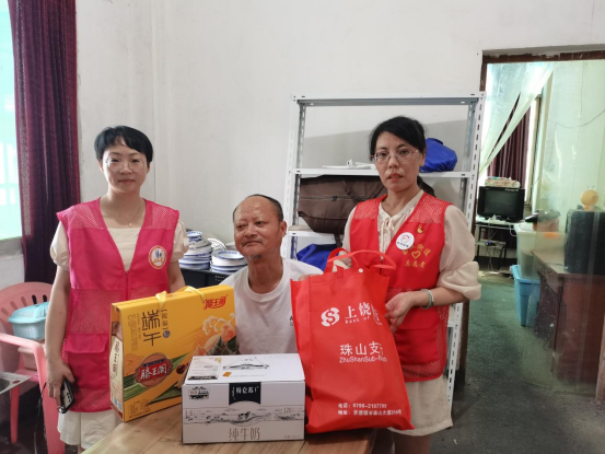 走访慰问中,珠山支行行长张文及桂花弄社区志愿者为现场的困难群众送上慰问品——粽子、牛奶和绿豆,并致以节日的祝福。随后,大家一同前往辖区行动不便的孤寡老人家中拜访,为他们送去慰问品,询问他们的身体健康状况和家庭生活情况,嘱咐他们要好好保重身体,有什么困难及时向社区反映。