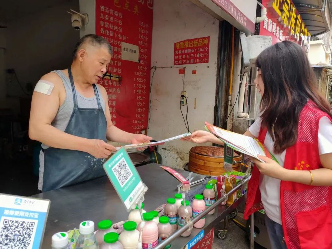 活动中,街道经济办工作人员及社区工作者向沿街商户及群众派发商贸领域垃圾分类倡议书,进行垃圾分类知识的宣讲,进一步深化垃圾分类理念,增强垃圾分类的意识。