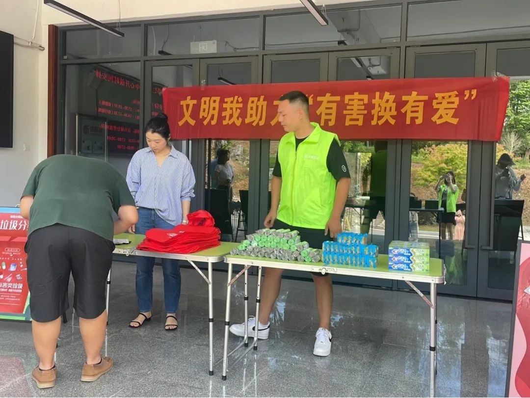 活动现场,工作人员拉起了“文明助力,有害换有爱” 的横幅,并展出有害垃圾分类的展板,志愿者为前来参与活动的干部职工派发垃圾分类宣传单,向到场的各机关单位干部职工宣传有害垃圾的种类和如何进行有害垃圾的处理。在回收过程中收集到的有害垃圾有废弃电池、过期药品、杀虫剂等,干部职工可以用这些废弃物品来兑换垃圾袋、肥皂、牙膏等礼品。