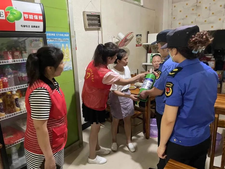 活动中、中路社区平安建设网格长和城管工作人员等在辖区内重点检查燃气餐饮场所、商超等密集场所。主要检查燃气管线和液化气钢瓶安全使用,报警装置、自闭阀、消防设施器材等安全装置配备,并督促引导餐饮等商铺负责人不断提高安全防范意识,加强商铺员工和从业人员安全教育培训,切实提高相关商铺人员的应急处置能力,提升大家的防范避险能力。