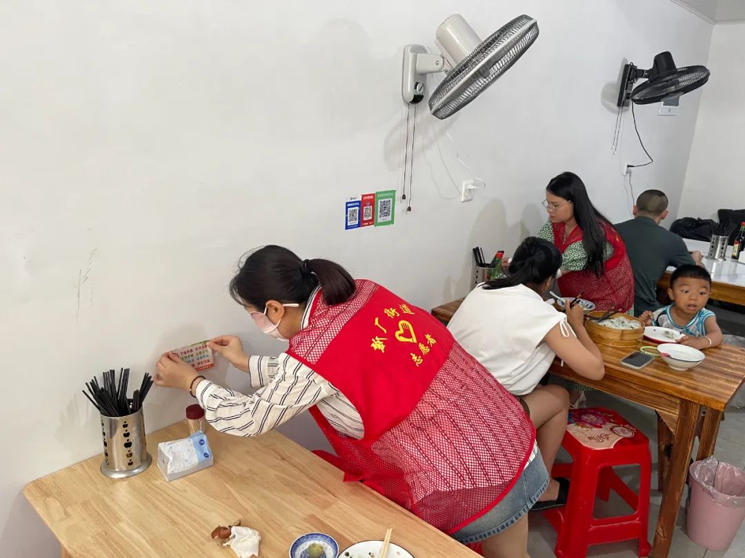 活动中,志愿者们向辖区小餐饮发放杜绝餐饮浪费倡议书和宣传资料,宣传节约的意义,倡导大家传承勤俭节约的美德,树立理性消费观念,不讲排场、不比阔气,坚决做到“吃多少点多少”,杜绝餐桌浪费行为。对辖区小餐饮经营铺张贴“节俭养德”“文明餐桌”“反对浪费”“绿色环保”等温馨提示,并督促商户保持店面门口卫生、干净、整洁,养成垃圾分类的习惯,优化辖区营商环境。