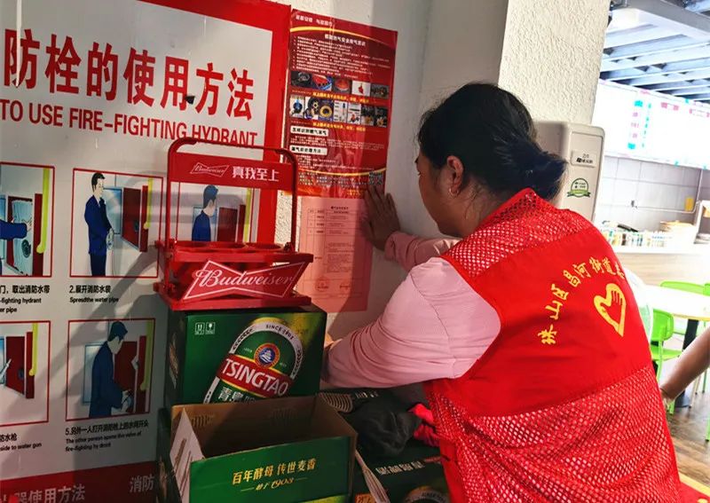 烈日炎炎,志愿者们以微网格为单位逐店进行入户排查走访,给小餐饮场所张贴燃气安全告知书,并检查前期向商户宣传需要安装燃气报警器的安装情况,提醒商户做好防范燃气爆炸措施。