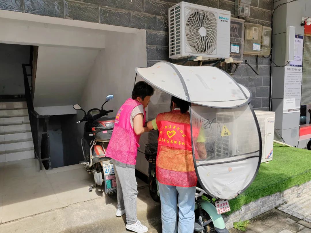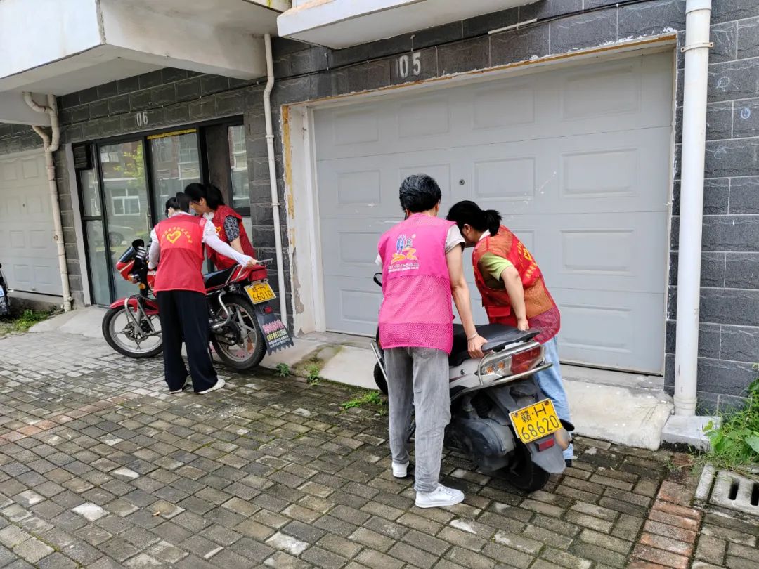 活动中,志愿者们来到小区居民楼将道路两旁及楼道内随意停放的非机动车推到指定停放点摆放整齐,同时向过往居民群众积极宣传文明骑行、有序停放的重要意义,引导正在停放车辆的居民将车摆放到集中的停放区域,鼓励大家监督身边存在的不文明行为。并向居民介绍安全交通知识,提醒夏季步行、乘车、驾驶出行的注意事项。讲解什么是“四不出门”?即“无牌无照不出门、带篷打伞不出门、不戴安全头盔不出门、违法载人不出门”等。