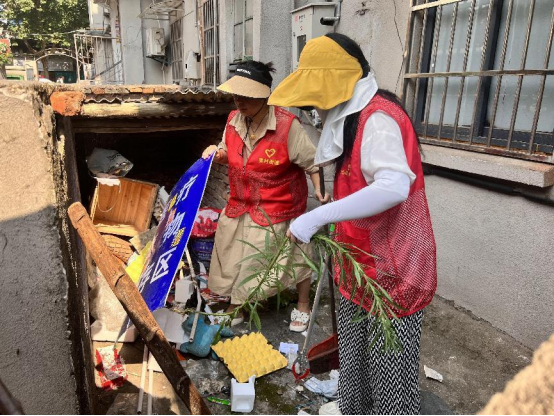 活动中,志愿者们分工合作,对辖区小巷内的绿化带、垃圾死角,楼栋院落内的废弃物,破旧车子,“牛皮癣” 小广告、以及辖区内乱堆乱放的纸箱等进行综合大清理,发现问题及时与居民沟通,并告知他们乱堆放废旧物挡住安全通道存在的安全隐患问题,对绿化带无法清扫出的垃圾、瓜果皮、纸巾用钳子夹出,并清扫路面塑料袋、烟头、枯枝树叶等,并倡导商户维护好良好的经营环境,不要乱排污水,乱倒垃圾,做到垃圾分类,为辖区居民营造一个卫生整治、干净宜居的环境。