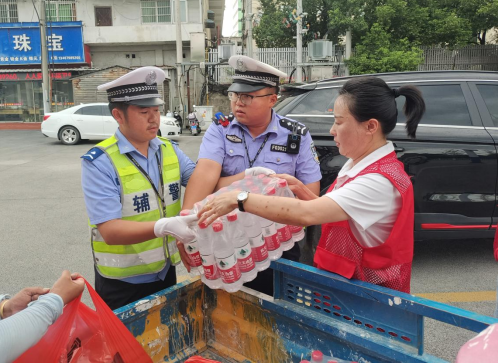 民警心连心,警民一家亲,社区工作人员一行人还来到了市交警三大队进行了慰问,为他们带去了防暑药品、矿泉水、西瓜等慰问品,对他们默默无闻、无私奉献的精神致以崇高敬意。