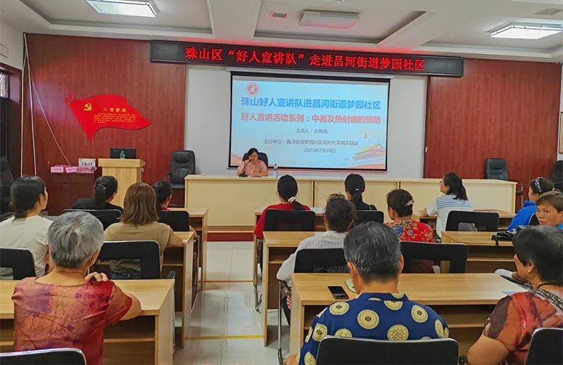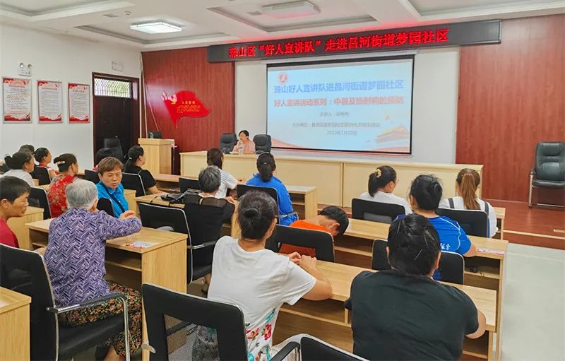为让居民更多的了解防暑常识和应对技巧,增强对夏季疾病的预防能力,过一个健康清凉的夏季,充分发挥道德模范(身边好人)的示范引领作用。7月20日,昌河街道梦园社区以新时代文明实践站为依托,邀请全国抗疫最美家庭、市道德模范、市二医院护士长高梅梅为辖区居民开展好人宣讲活动:文明健康知识讲座。让居民们做好防暑降温措施,避免中暑事件的发生。