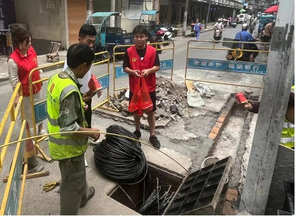 一块甜甜的西瓜,恰似夏日里的阵阵凉风,沁人心脾。一份清凉和关爱,一声"辛苦了",既表达了人们对高温作业下劳动工作者们的尊重和敬意,更饱含着社区对美丽社区建设者的深情关怀。