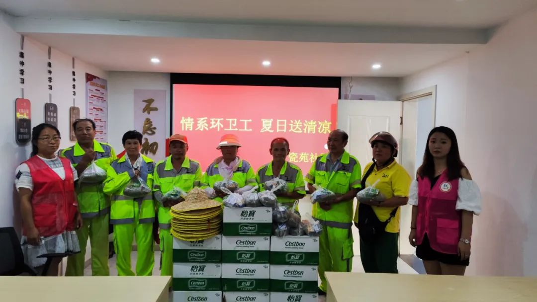 盛夏之时,酷暑高温,在大街小巷,依然能看到在炎炎夏日下辛勤工作的环卫工者,他们坚守岗位,为城市整洁奉献汗水。7月27日,新厂街道瓷苑社区开展“情系环卫工 夏日送清凉”志愿服务活动。