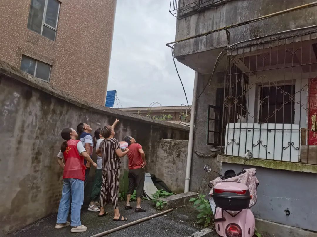 今年第五号台风“杜苏芮”来势汹汹,为了应对台风可能带来的大风、暴雨影响,新厂街道黄泥头社区积极行动起来,组织精网微格网格员、综治队员深入辖区老旧小区,开展危房、危树及高空坠物隐患排查专项整治行动,有效防范高空坠物事件的发生,确保群众安全。