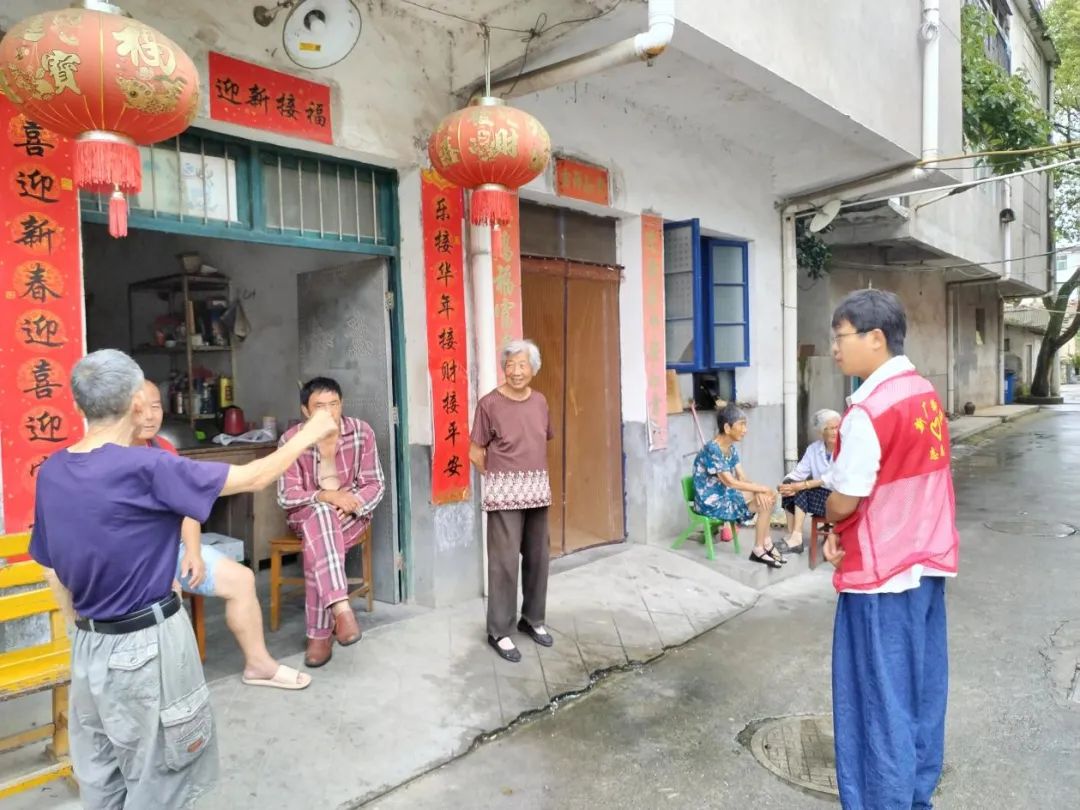 “台风来了,请大家注意安全,关好门窗、不要外出,花盆等容易坠落物品请移入室内,电器设备使用也要当心……”为了提醒辖区居民做好台风防范工作,社区网格员穿上红马甲、手持小喇叭,在小区循环播放防范台风的温馨提示,对辖区内的空巢、独居、高龄老人等特殊人群,也积极进行走访联系。