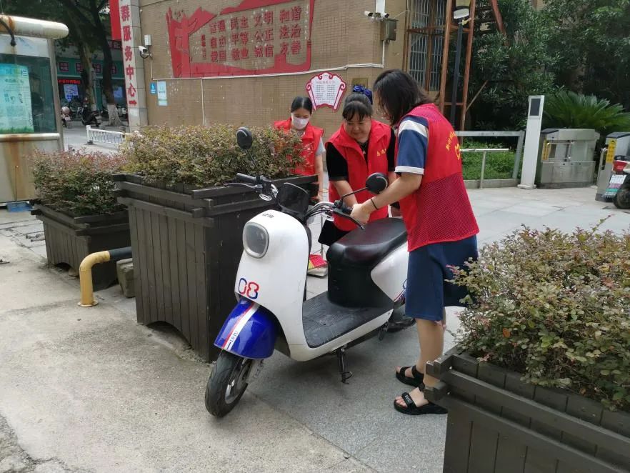 整治行动中,社区工作人员和志愿者们对小区内停放的非机动车辆进行了集中整治,将单元楼道出口、小区入口、沿街商铺门口等处的乱停乱放非机动车拖移至统一设置的停车点,志愿者还提醒居民杜绝私搭乱接、乱停乱放,并告知电瓶车乱停乱放的危害性。