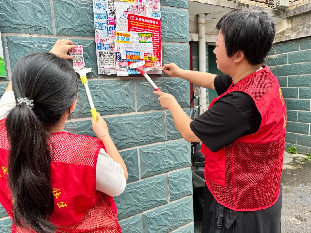活动中,志愿者们拿着夹子、扫把等清洁工具,对绿化带的烟头和垃圾杂物进行清扫,用小铲刀对辖区内随意张贴的墙面小广告仔细清除。此外,社区工作人员还对居民楼道堆放物品的行为进行劝导,通过大家的共同努力,社区卫生环境得到了明显改善。